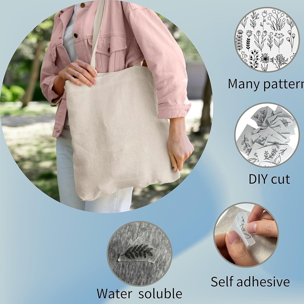 Self-Adhesive Design: No more tracing or transferring designs onto fabric! Our stick and stitch paper features a self-adhesive design that makes it easy to attach to your fabric for quick and easy embroidery.