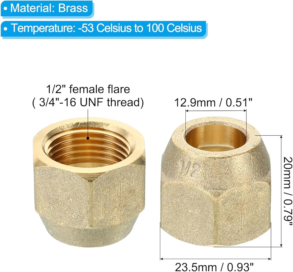 اللون: ذهبي؛ المادة: نحاس؛ مواصفات الخيط: 1/4 بوصة مضيئة أنثى (7/16 بوصة -20 خيط UNF)؛ الارتفاع: 15 ملم / 0.59 بوصة؛ العرض السداسي: 17 ملم / 0.67 بوصة؛ قطر الثقب الداخلي: 6.6 ملم / 0.26 بوصة؛ درجة الحرارة: -53 درجة مئوية إلى 100 درجة مئوية؛ قائمة التعبئة: 10 قطعة × صامولة نحاسية مضيئة