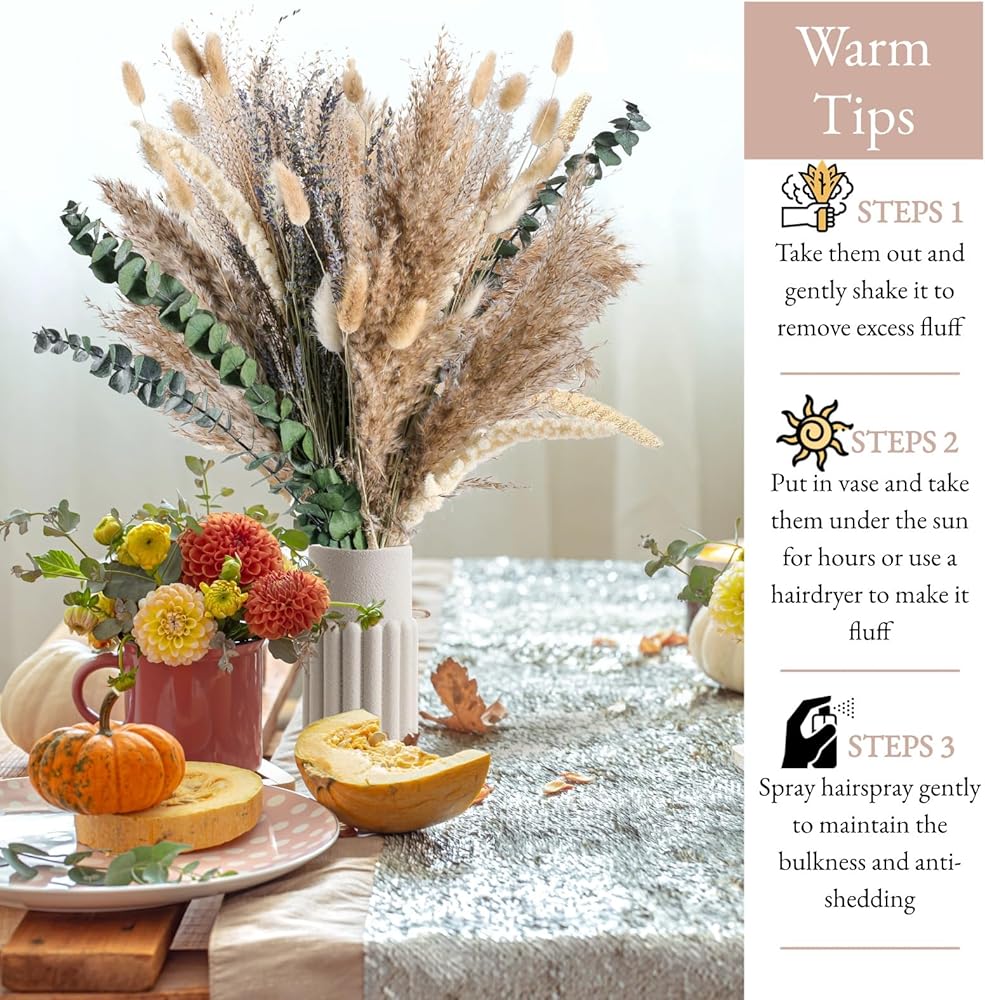 🌾سحر لا يتأثر بمرور الوقت - على عكس الزهور الطازجة التي تذبل بسرعة، تظل باقة الزهور المجففة لدينا ساحرة طوال الفصول. سواء كان ذلك في الربيع أو الصيف أو الخريف أو الشتاء، فإن هذه الأزهار الدائمة تحافظ على جاذبيتها دون الحاجة إلى الري أو التقليم. دع جاذبيتها الخالدة تضفي لمسة من الطبيعة إلى غرفتك، يومًا بعد يوم. بالإضافة إلى ذلك، فإنها تمثل حشوات مزهرية مثالية، مما يخلق أجواء ريفية جميلة في أي مكان.