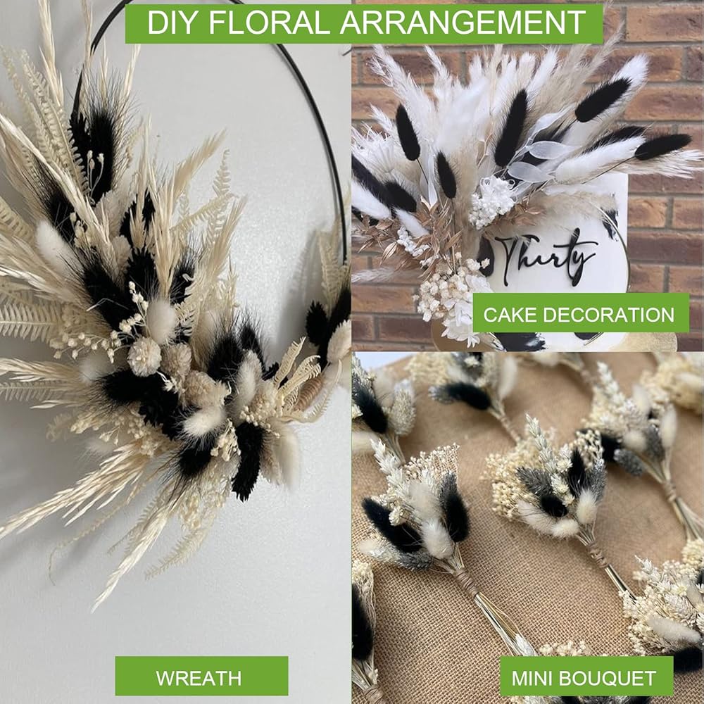 • تستخدم على نطاق واسع: ذيول الأرنب المجففة هي عنصر زخرفي جميل، يمكنك استخدامها لتزيين المزهريات وتنظيم الزهور المجففة وكعك أعياد الميلاد والكب كيك وحفلات الزفاف الربيعية ومراكز الطاولة والمناسبات الأخرى، وحتى إضافتها كعمل فني للحرف اليدوية.