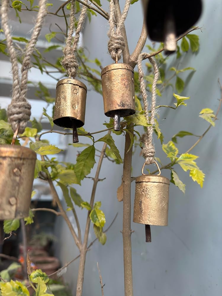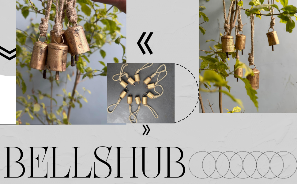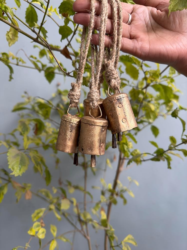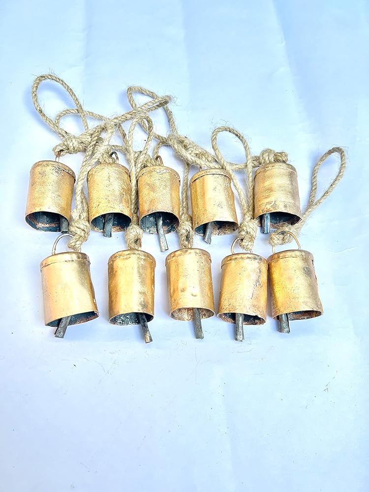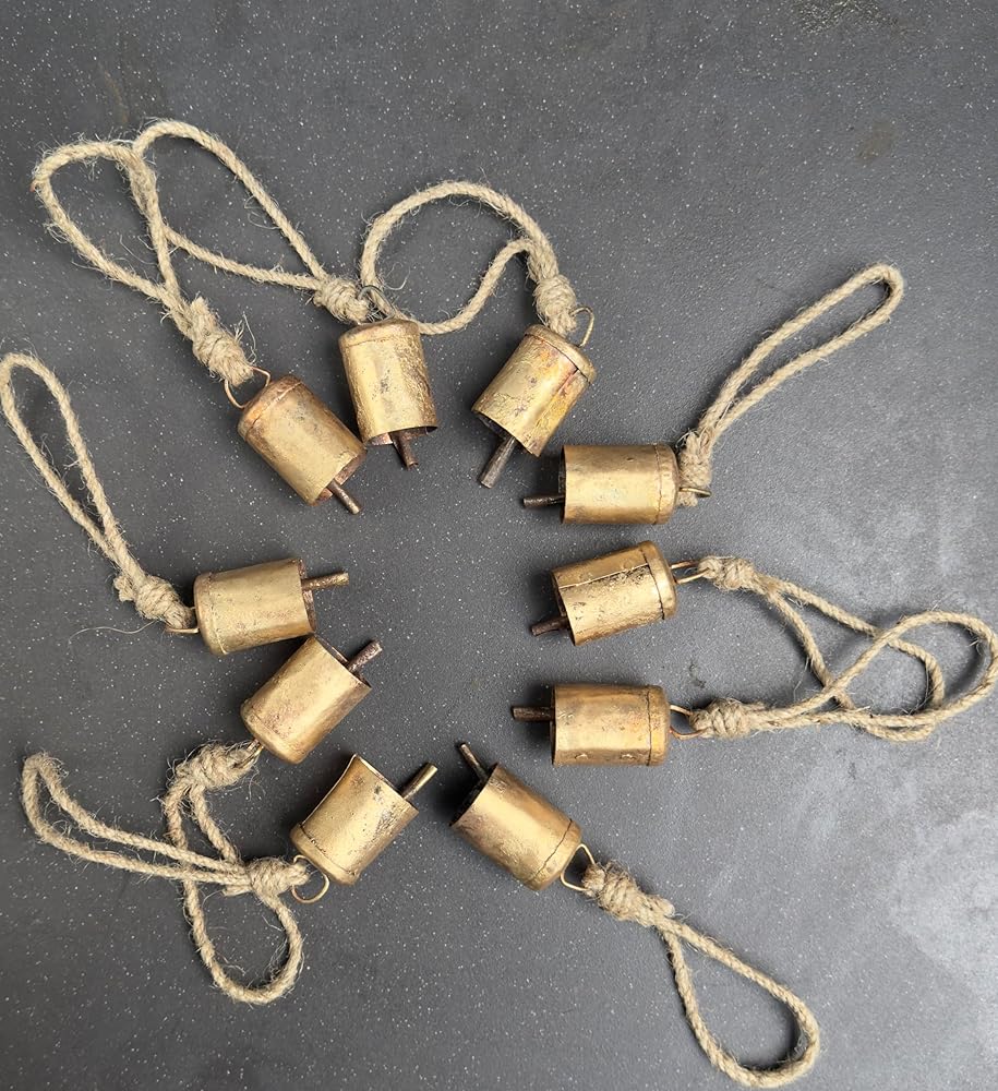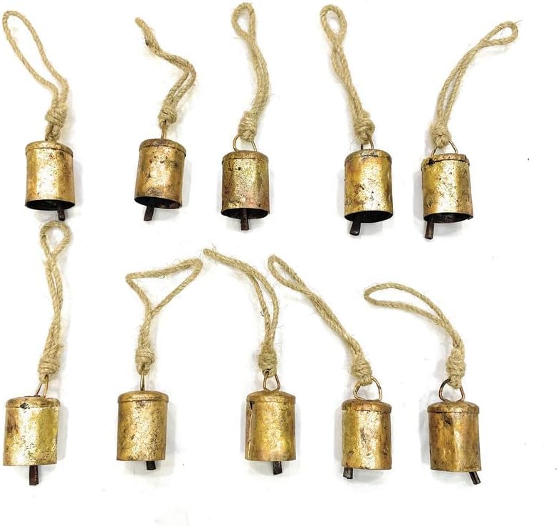 أجراس القصدير الهندية المصنوعة يدويًا من Bellshub العتيقة | ريفي الرنين خمر جلجل الجرس | أجراس البقر | شجرة عيد الميلاد | زخرفة الحرف | جرس صوت متناغم معدني مصنوع يدويًا على الطراز الريفي | مجموعة من 10.