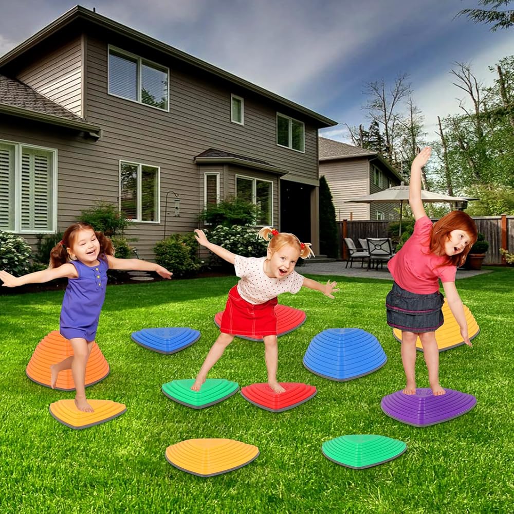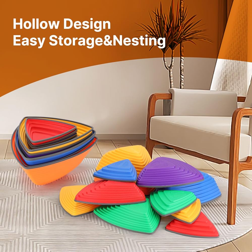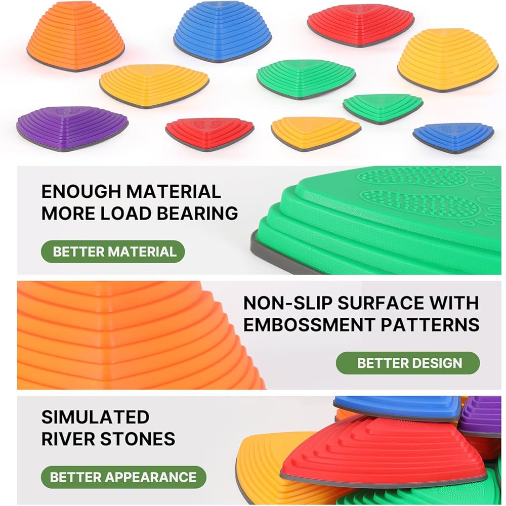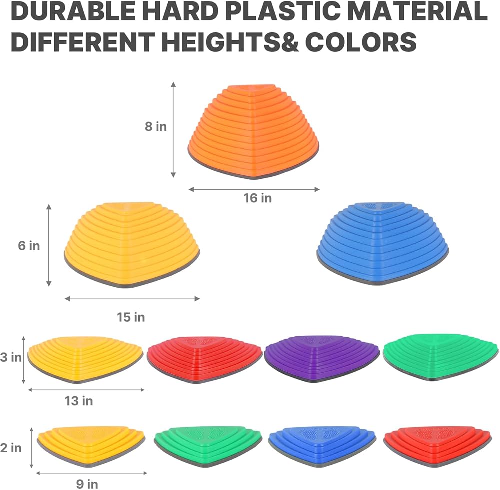 🔔تصميم آمن ومقاوم للانزلاق🔔: تم تصميم أحجار الخطوات لدينا بقواعد مطاطية، وتوفر قبضة غير قابلة للانزلاق، مما يجعلها مناسبة للاستخدام على الأسطح مثل السجاد أو العشب. يضمن تصميمها المثلث القوي الثبات، مما يقلل من خطر السقوط أثناء قفز الأطفال ولعبهم.