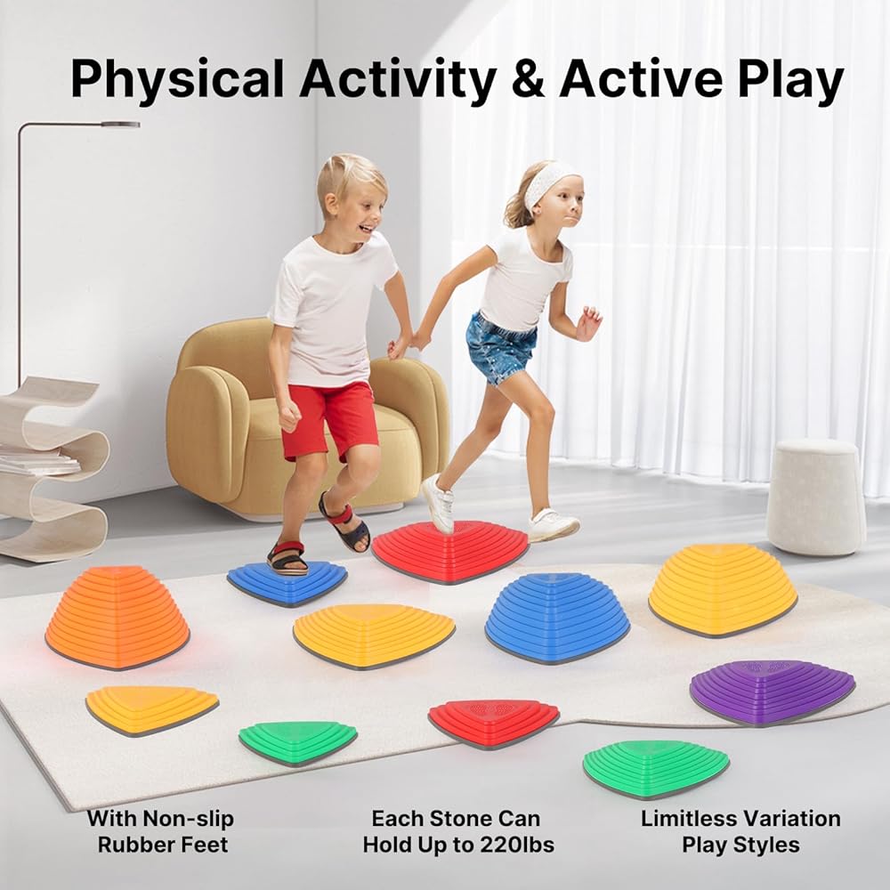 🔔خيارات لعب متعددة الاستخدامات ومجموعة موسعة مكونة من 11 قطعة🔔: أشعل خيال طفلك مع مجموعة ستيبينج ستون للأطفال! تتميز هذه المجموعة المكونة من 11 قطعة بأحجام وارتفاعات مختلفة، وتوفر إمكانيات لا حصر لها للعب، مما يسمح للأطفال باستكشاف ألعاب مختلفة ودورات العوائق والتكوينات أثناء نموهم.