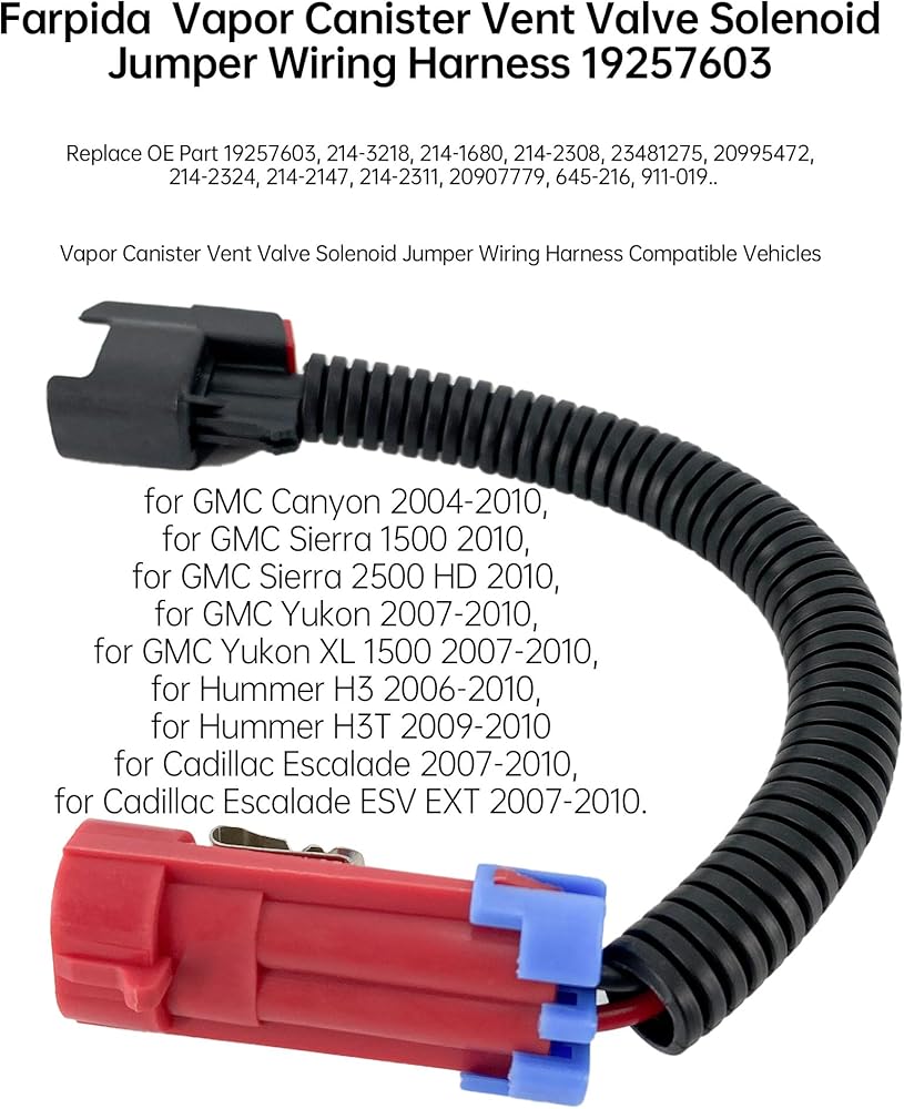 【مركبة متوافقة】سرج أسلاك الملف اللولبي لصمام فتحة التهوية مناسب لـ Chevy Avalanche 2007-2010، لـ Chevy Colorado 2004-2010، لـ Chevy HHR 2007-2010، لـ Chevy Silverado 1500 2500 HD 2010، لـ Chevy Suburban 1500 2007-2010، لسيارة تشيفي تاهو 2007-2010، لسيارة جي إم سي كانيون 2004-2010، لسيارة جي إم سي سييرا 1500 2010، لسيارة جي إم سي سييرا 2500 HD 2010، لسيارة جي إم سي يوكون 2007-2010، لسيارة جي إم سي يوكون XL 1500 2007-2010، لسيارة هامر H3 2006-2010، لهامر H3T 2009-2010، لكاديلاك إسكاليد 2007-2010.