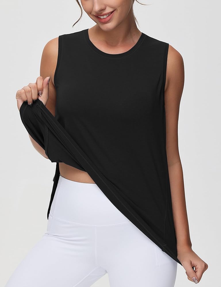 Unique Hemline: The Yoga Tank Tops is designed with long front and short back irregular hem, moderate length and not easy to roll up, enough to cover hips.
