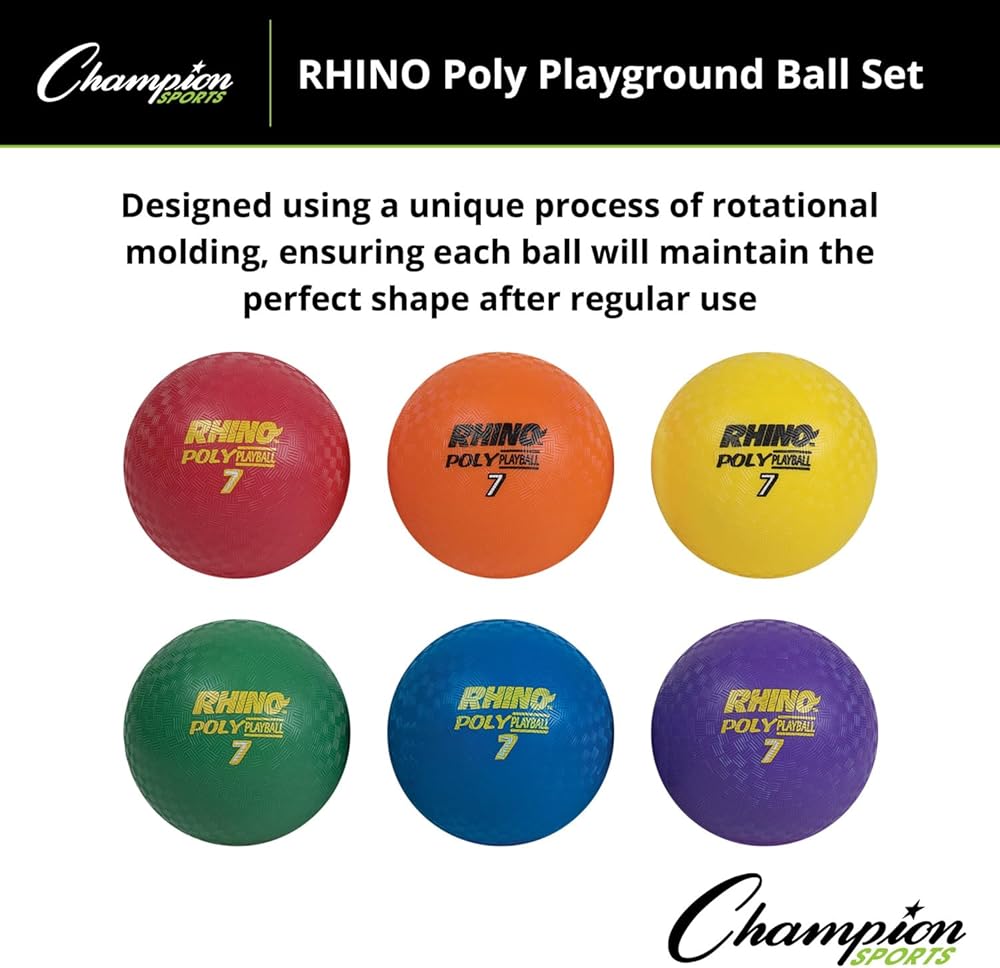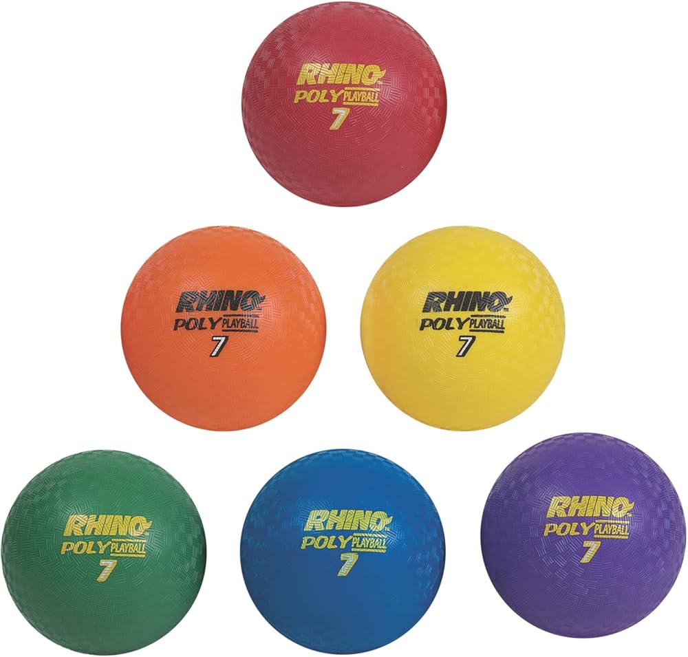 Take on a variety of playground games with the 7 Inch Rhino Poly playground ball set. These balls are designed using a unique process of rotational molding, ensuring each ball will maintain the perfect shape after regular use. This ultimate bladderless playground ball features a seamless design that prevents no shape distortion or air leakage even if it's over-inflated. The Rhino Poly playground ball set offers ease of play and is an excellent choice for all age groups. The Rhino textured cover offers exceptional grip and durability, making them a convenient option for gym classes and playground games during recess. Balls ship deflated - pump not included.
