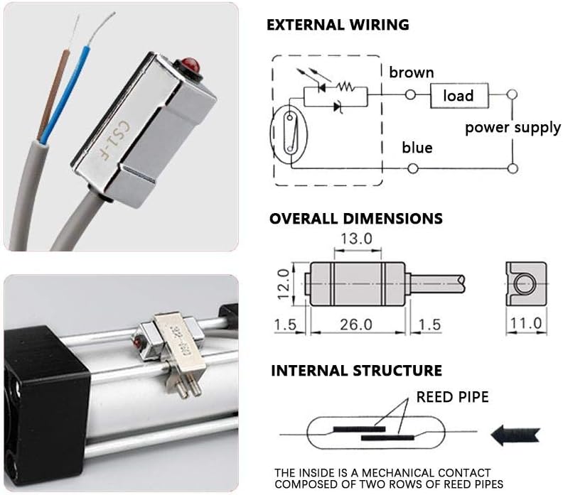 100% brand new and high quality Used for Pneumatic Cylinder SU/SC/ SI /MAL/ MA This magnetic sensor switch has strong overload capacity High sensitivity and stable performance Magnetic sensor reed switch is easy to wire and use