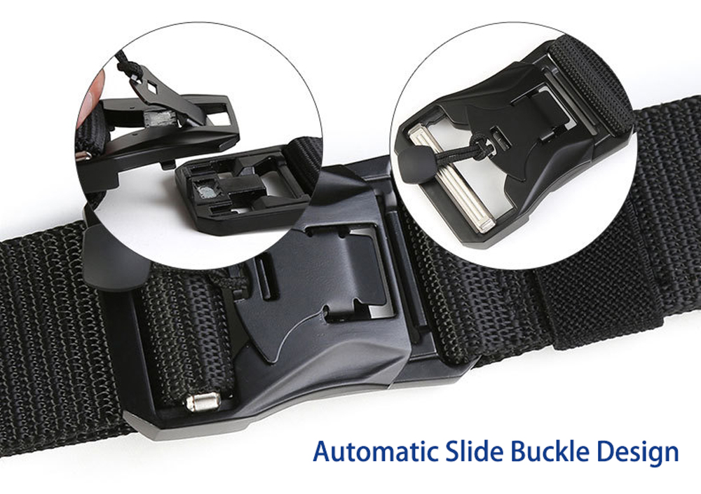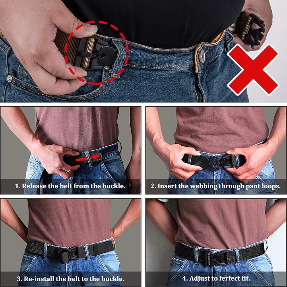 【إبزيم مغناطيسي سريع التبديل】مادة سبيكة قوية. يتميز حزام الويب هذا بميزات التحرير والإغلاق السريع التي تريدها. ما عليك سوى سحب الخيط الصغير لفتحه وإغلاقه، فقط أدخله في الفتحة وسيقوم المغناطيس بإعادته مرة أخرى. أسرع بكثير من الفتح والإغلاق بإبزيم الحزام العادي. تصميم إبزيم منزلق تلقائي يمكن تضييقه في كل مكان تريد إيقافه ليناسب خصرك تمامًا. لا حاجة للتعديل بشكل متكرر.