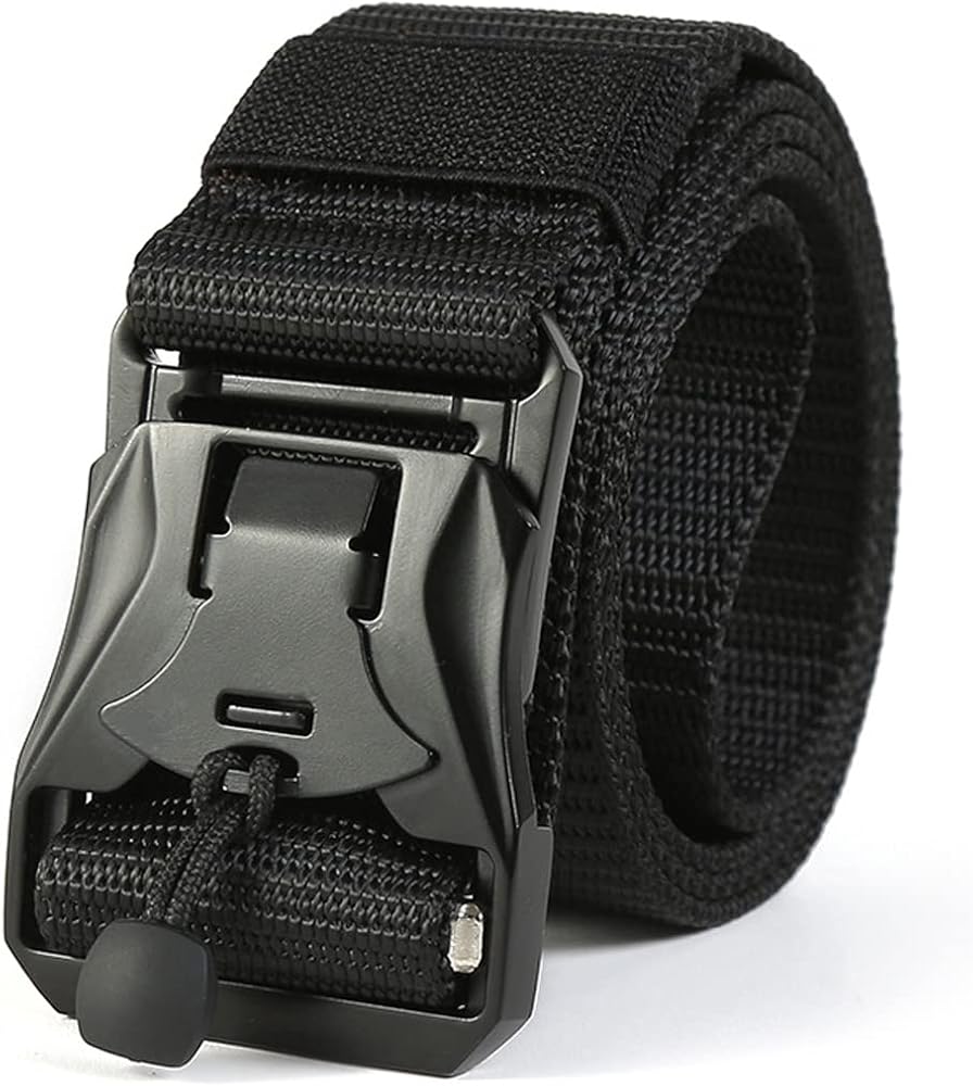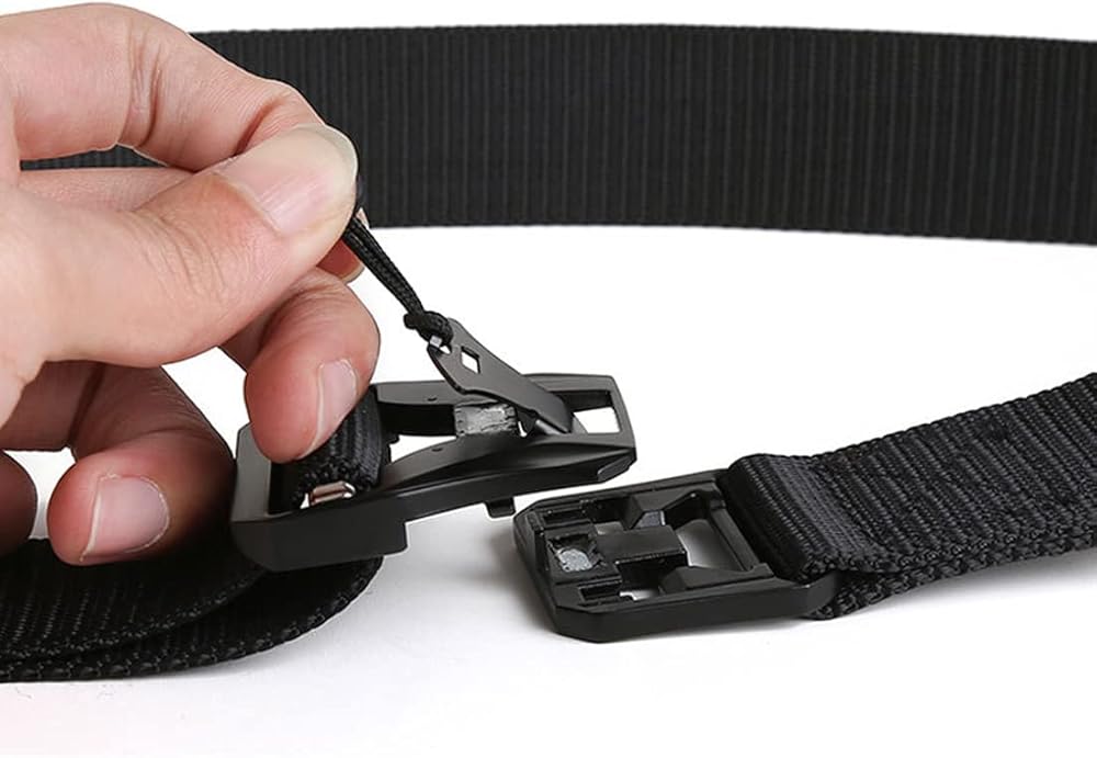 【ثانية واحدة للإطلاق】هذا الحزام الكاجوال مزود بإبزيم معدني مضاد للسحب مع شريط صغير يسمح لك بقفله أو فكه في ثانية. شاهد ثانية واحدة لتحرير الحزام.