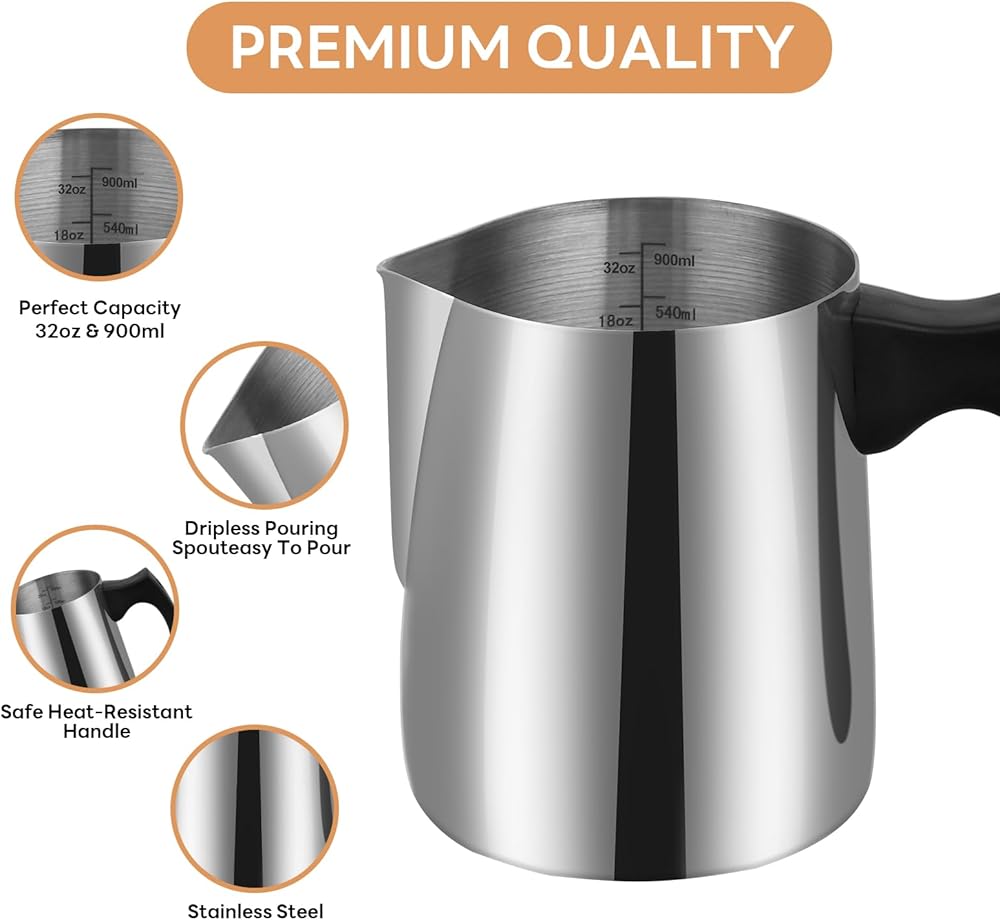 [جودة فائقة] إبريق صب الشموع الخاص بنا مصنوع من الفولاذ المقاوم للصدأ عالي الجودة، مما يضمن مقاومة قوية ضد التآكل والصدأ ودرجة الحرارة العالية. ليس هذا فحسب، بل أصبح التنظيف أمرًا سهلاً - كل ما يتطلبه الأمر هو بعض الماء والصابون. خصص المزيد من الوقت للإبداع ووقتًا أقل للتنظيف.