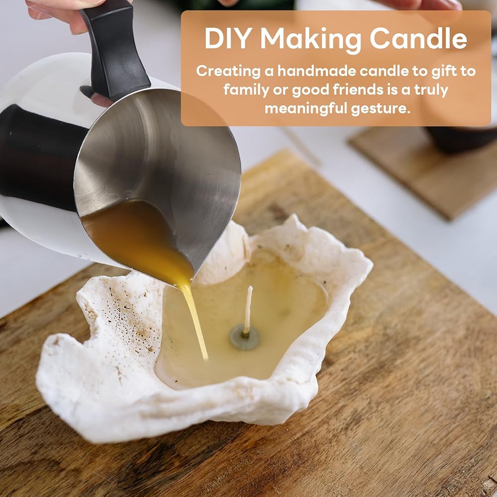 [سعة كبيرة] عزز صناعة الشموع الخاصة بك من خلال وعاء صب الشموع ذو السعة الكبيرة! يتميز وعاء صب الشموع هذا بحجم كبير يبلغ 32 أونصة/900 مل، ويمكنه استيعاب ضعف كمية الشمع الذائب تقريبًا مقارنة بالأنواع الأخرى الموجودة في السوق. مثالية للمشاريع الكبيرة، فهي تتيح تجربة أكثر انسيابية وممتعة. لذا، وداعًا للانقطاع المتكرر لإعادة التعبئة.
