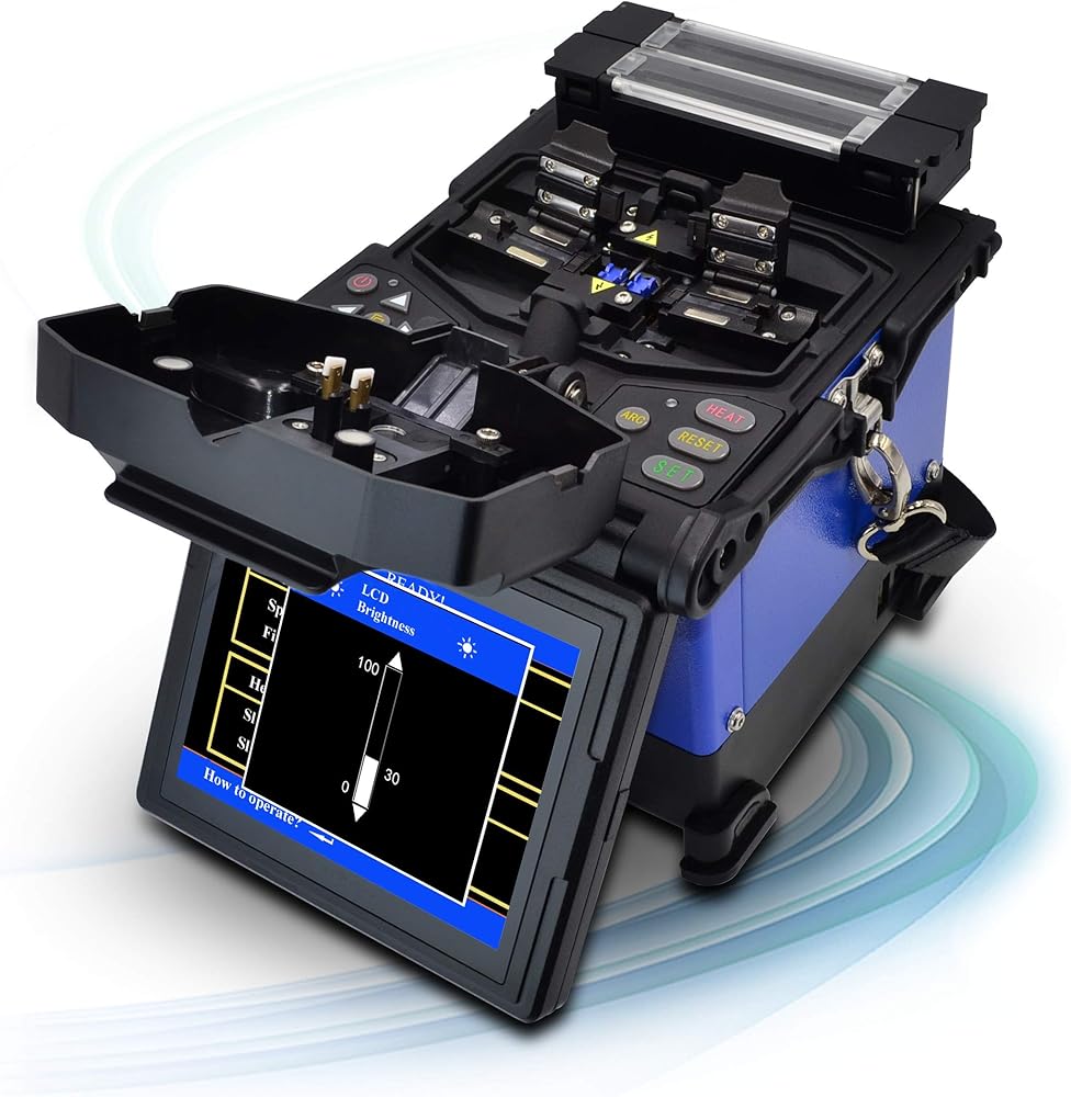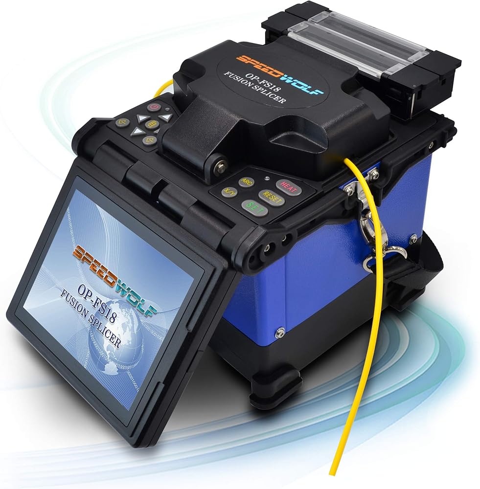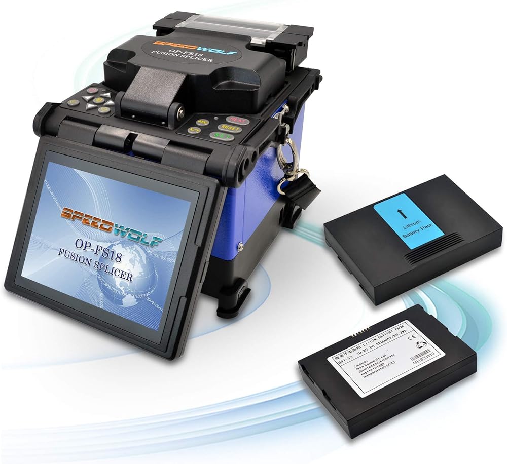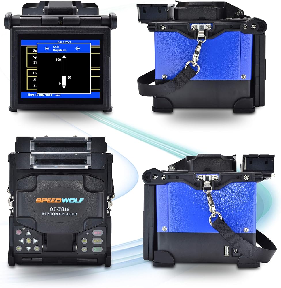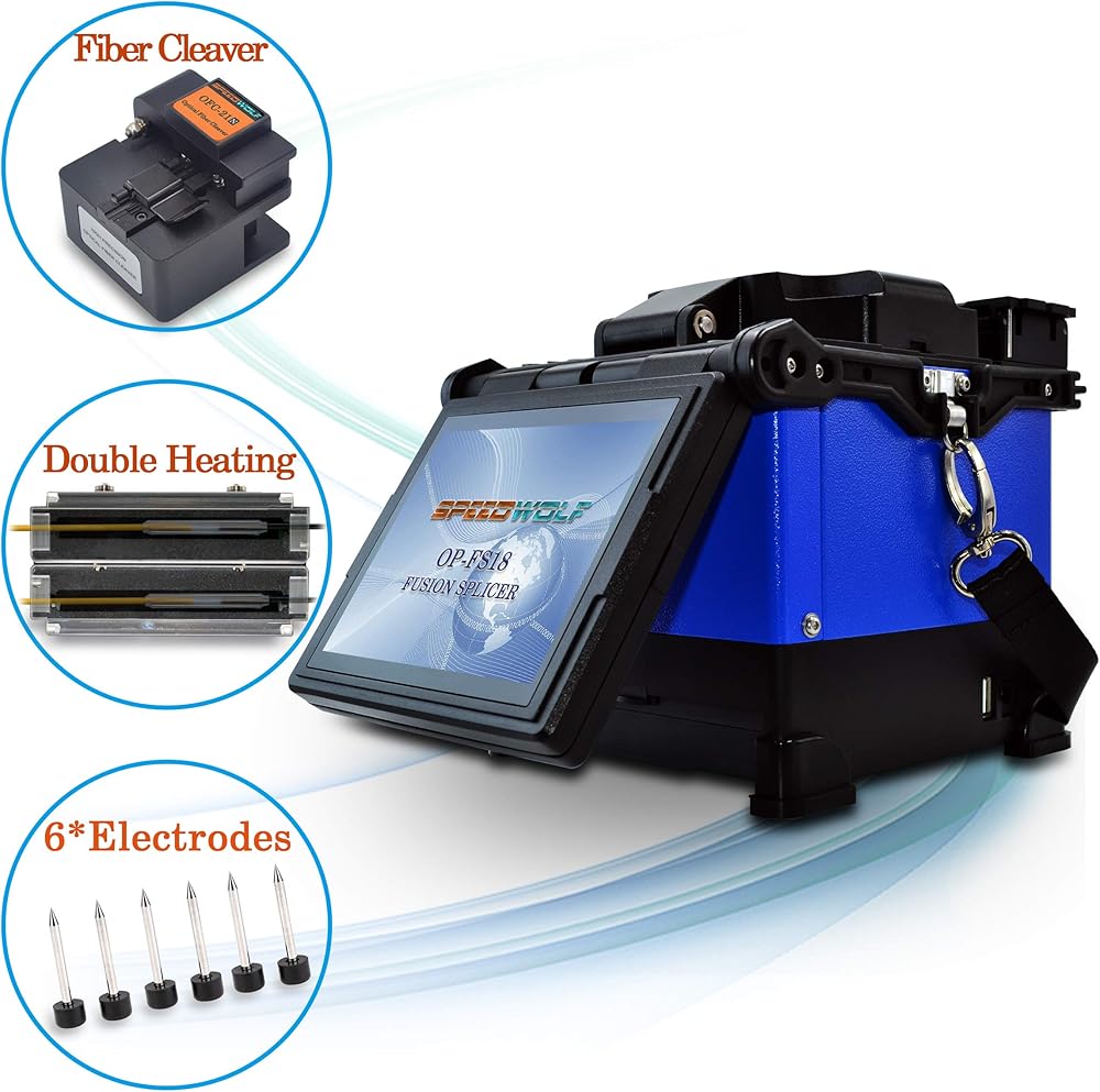 SPEEDWOLF 5 بوصة LCD مزدوجة التدفئة الأساسية محاذاة الألياف البصرية الانصهار جهاز الربط المحمولة FTTH آلة ربط الألياف البصرية لألياف SM / MM / DSF / NZDSF / ED مع ساطور الألياف و 6 أقطاب كهربائية (FS18-D-1)