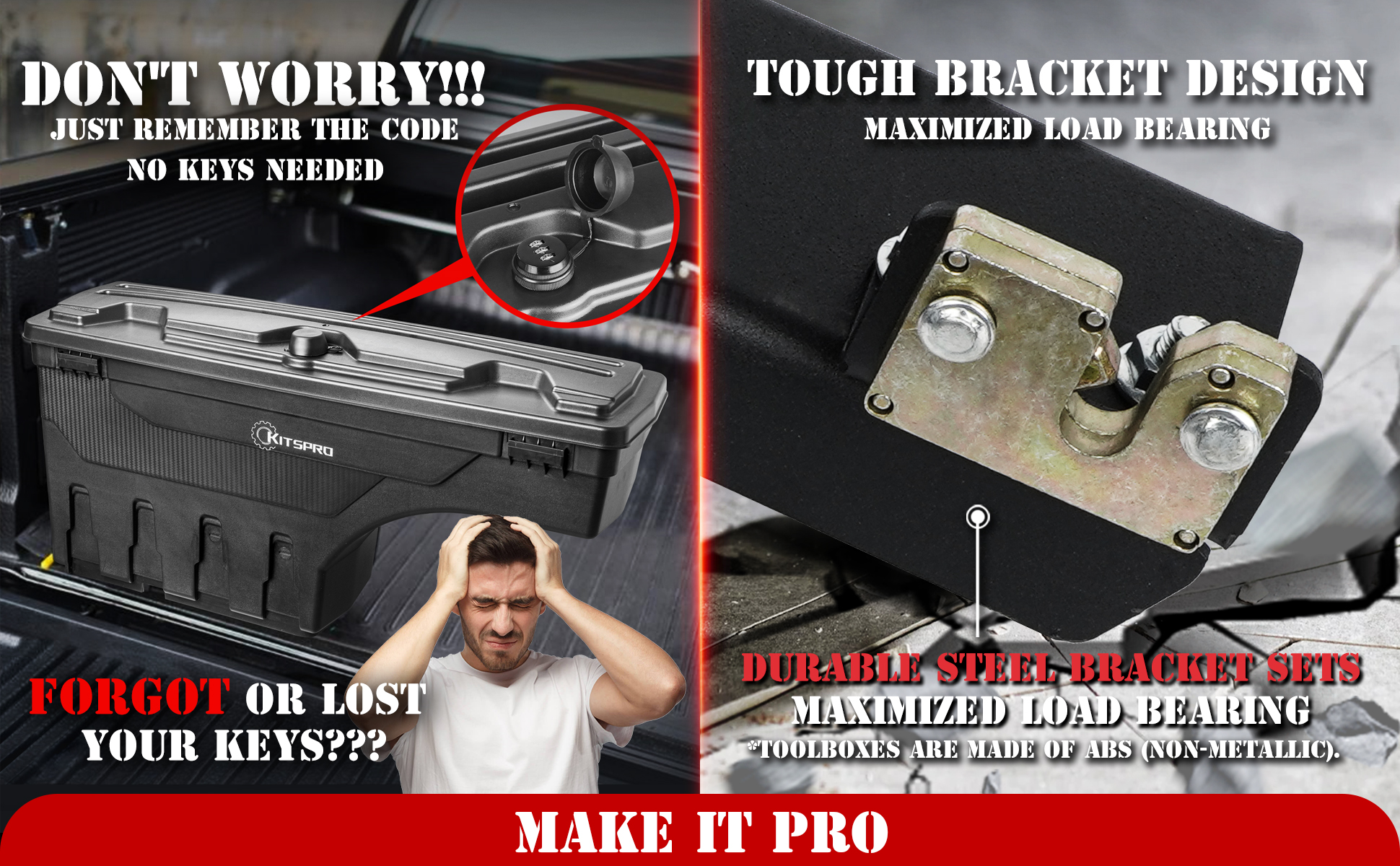 ✔【مقاومة للرطوبة】 تم تصميم صندوق أدوات سرير الشاحنة KitsPro بختم مقاوم للرطوبة لحماية أغراضك من الطقس القاسي. الصواني الداخلية تجعل من السهل وضع الأشياء الصغيرة وتنظيم متعلقاتك.