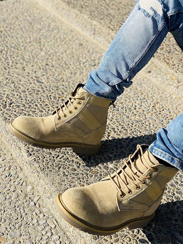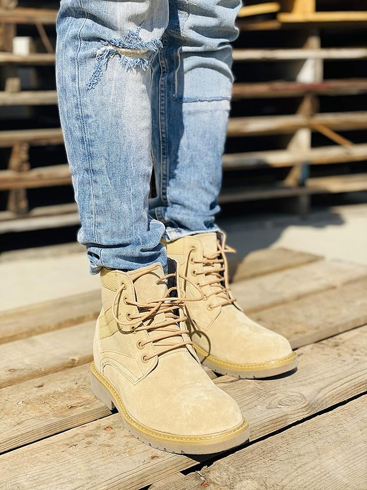 • Style: High top. Lace up combat look. Tactical-inspired work boots.