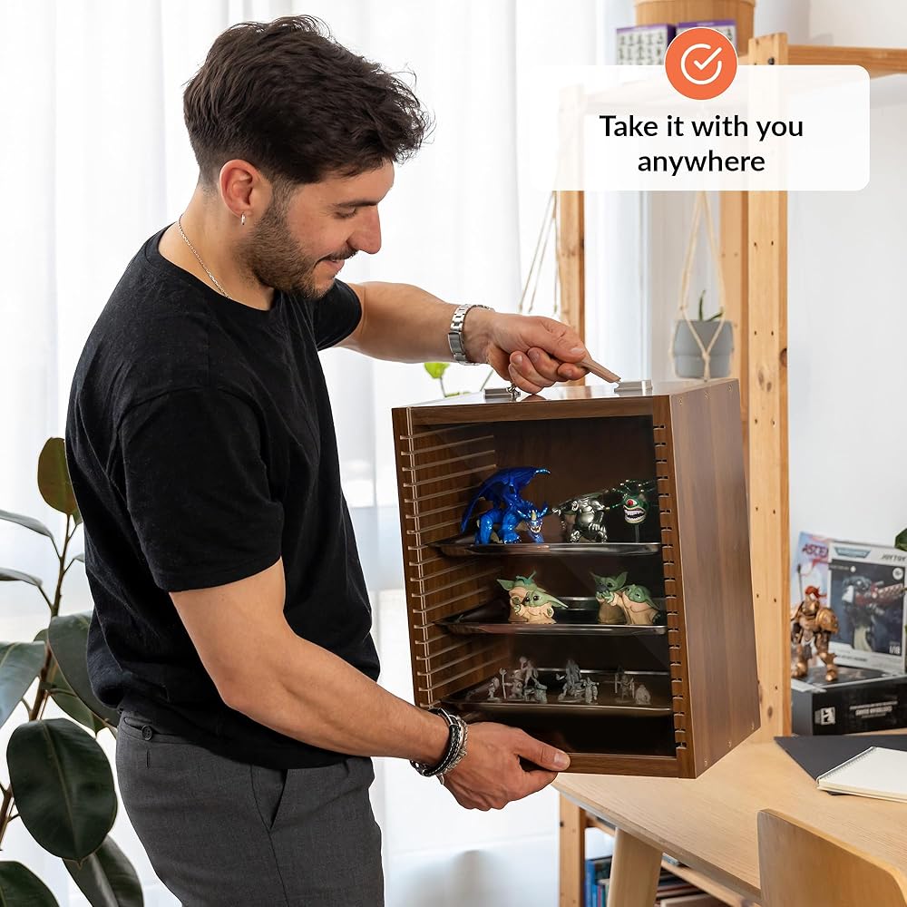 【خذها معك في أي مكان】تشتمل علبة العرض المصغرة على مقبض حمل مريح يتيح لك إحضار مقتنياتك إلى أي مؤتمر أو أمسية ألعاب! مثالية للاعبي Dungeons and Dragons أو Warhammer، سترفع علبة العرض المصغرة لعبتك إلى المستوى التالي.