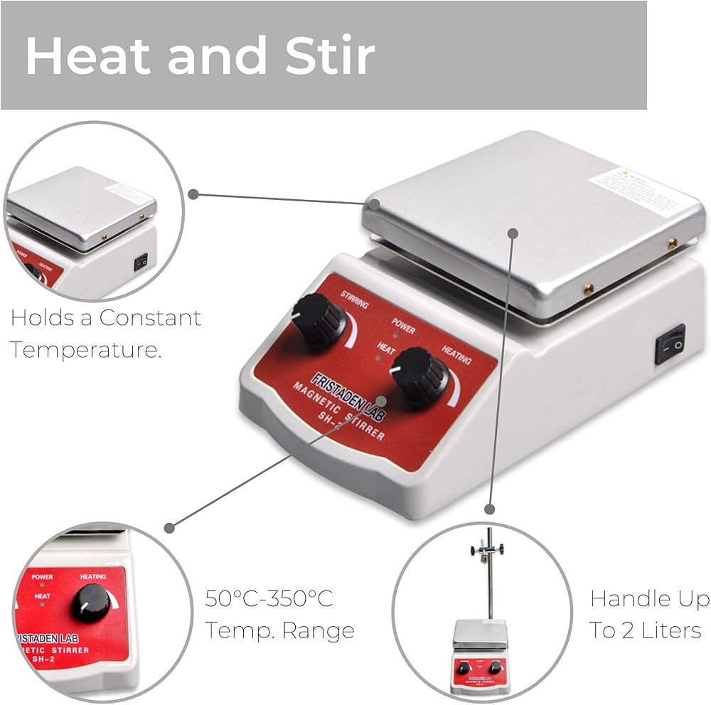 تسخين قوي: يحتوي لوح التسخين المغناطيسي Fristaden Lab SH-2 على عنصر تسخين قوي 180 واط مع نطاق درجة حرارة 49-350 درجة مئوية. تتيح لوحة الألومنيوم توزيعًا متساويًا للحرارة ويمكنها استيعاب ما يصل إلى 2000 مل من حجم السائل. يتضمن محرك المعمل حامل مستشعر درجة الحرارة القابل للتعديل والذي يمكن تركيبه بسهولة في الجزء الخلفي من الجهاز.
