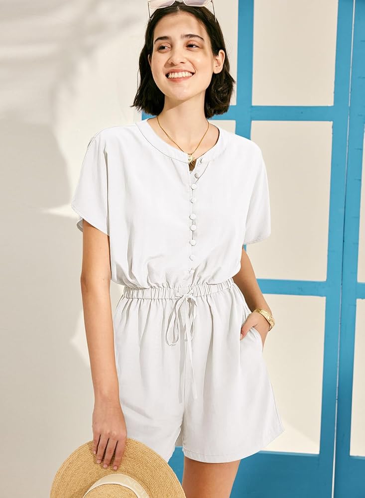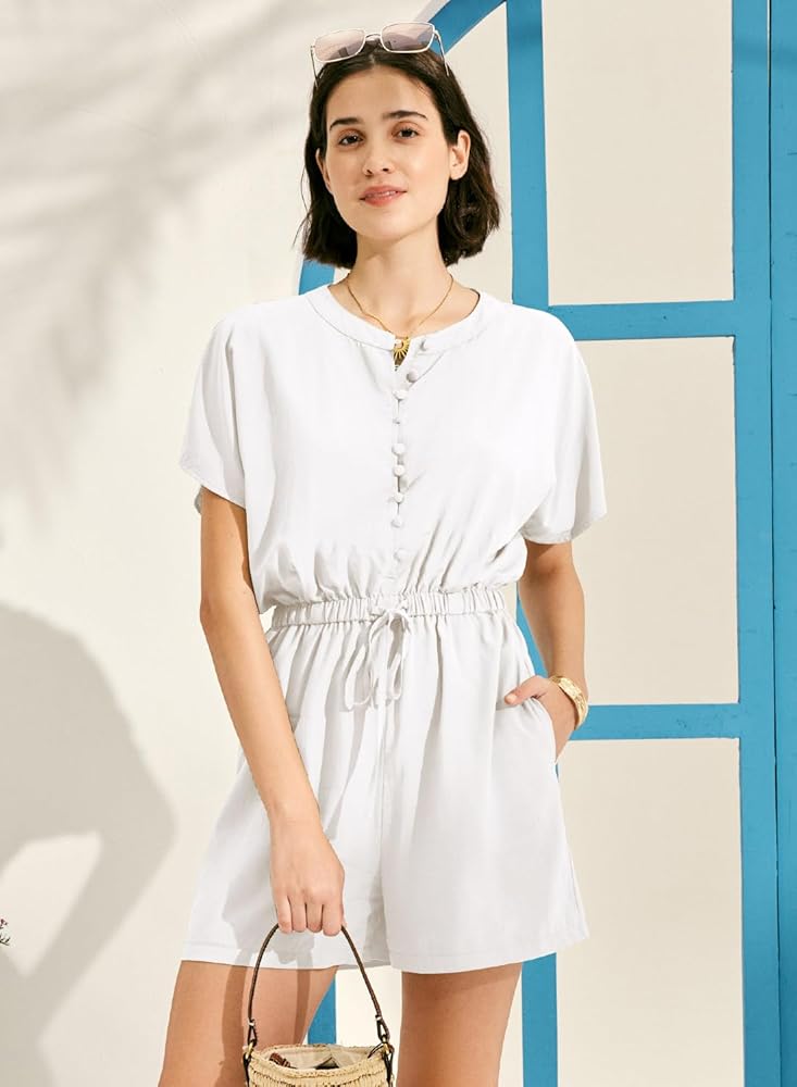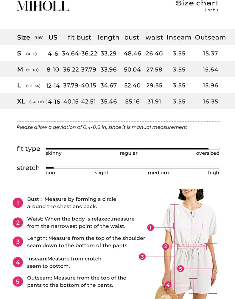 التصميم: حزام الخصر المطاطي مع تصميم الرباط للبذلات القصيرة يمكن أن يزيد من الشعور بالنعومة الأنثوية. تصميم الرقبة المستديرة كلاسيكي وأنيق، وكله لديه نوع من الشعور بالترفيه أثناء الإجازة، ولا يفقد سحر الموضة.