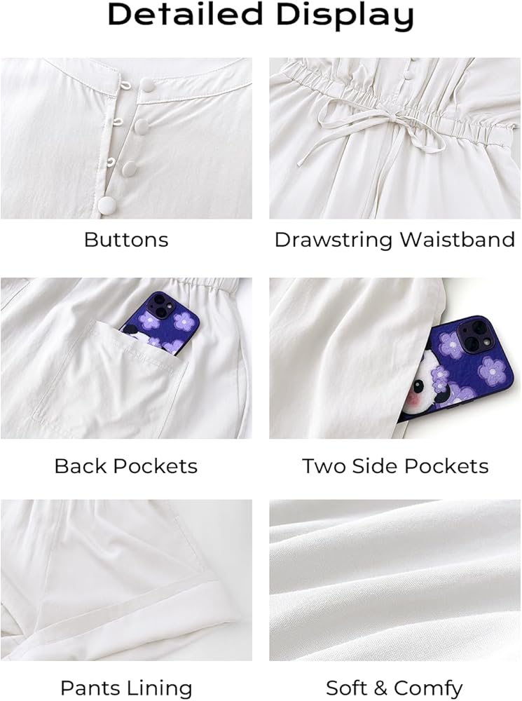 المواد: نسيج عالي الجودة، ناعم، مسامي، صديق للجلد، مريح للغاية في الارتداء. هذه البدلة النسائية خفيفة الوزن، ولكنها غير شفافة، مع بطانة داخلية على البنطلون. الأقمشة الاحترافية تجعل هذا الرومبير الكاجوال يمنحك تجربة مريحة في جميع الأوقات.