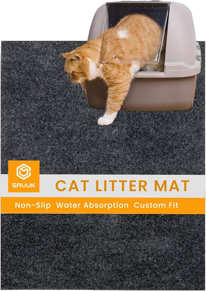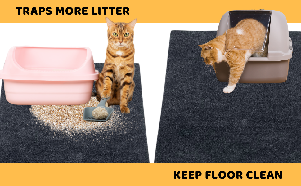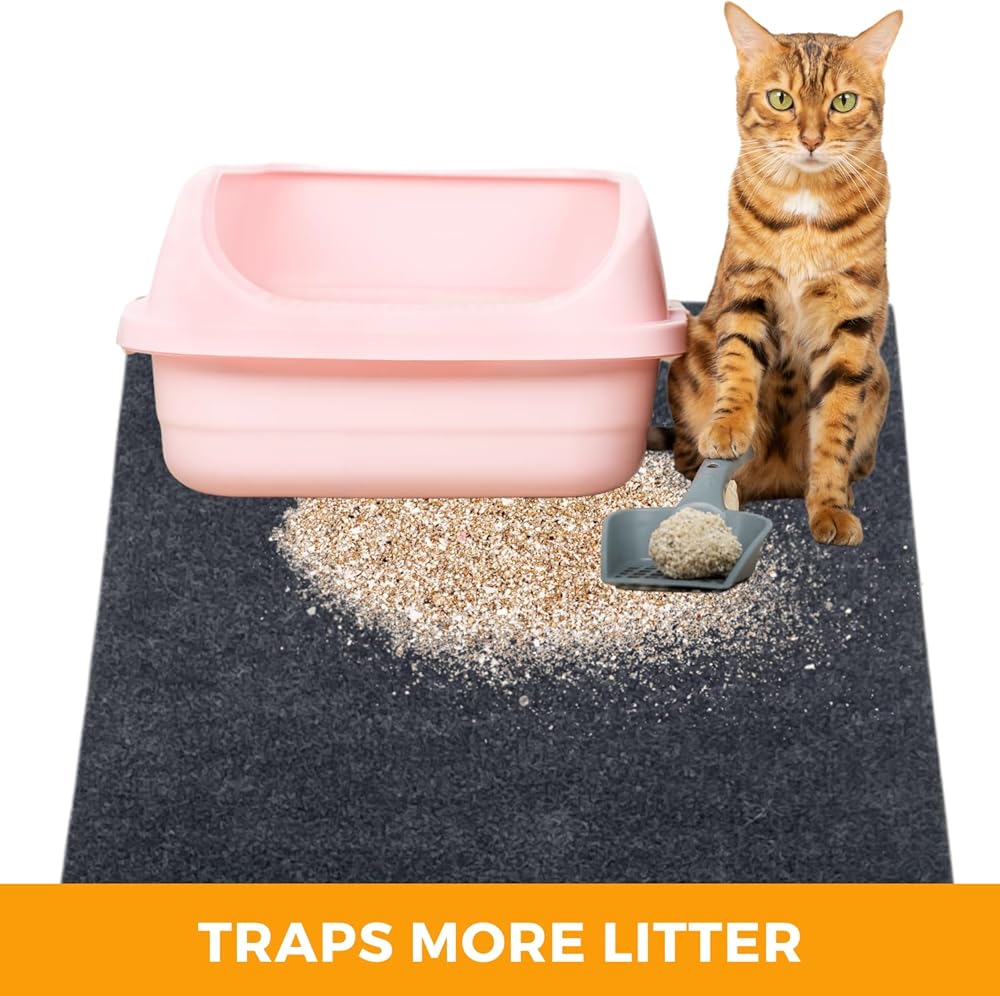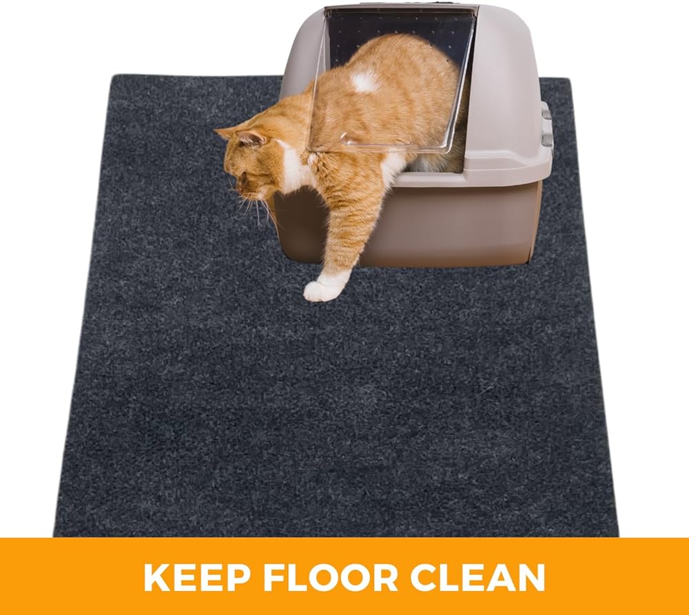 بساط فضلات القطط، يحتوي على فوضى من الصندوق لتنظيف الأرضيات، مقاوم للبول، ناعم على أقدام القطط، قابل للغسل/مقاوم للماء، قابل للغسل في الغسالة (60.96 سم × 76.2 سم، رمادي)