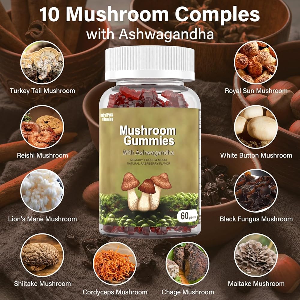 فوائد الفطر - تساعد علكات الفطر على القضاء على ضباب الدماغ، وتحسين التركيز، وقد تعزز وظائف المخ، ودعم الجهاز المناعي، وزيادة الطاقة، والمزاج الصحي، وصحة القلب لدعمك الشامل.