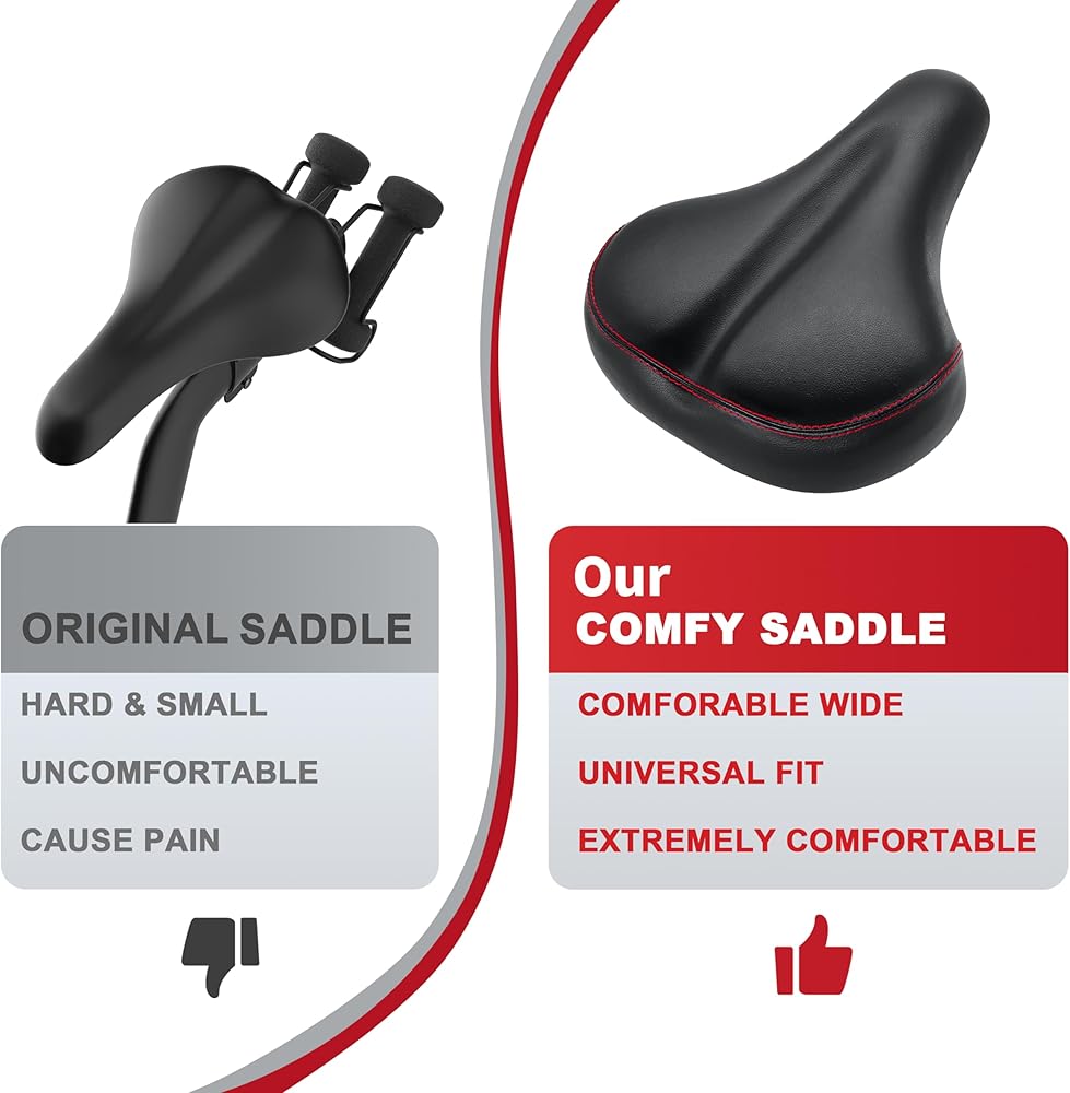 〖ناعم ومريح للغاية〗: سرج الدراجة المصنوع خصيصًا هذا هو تغيير قواعد اللعبة لرحلتك. إذا كنت مبتدئًا، يمكن أن تساعدك وسادة مقعد الدراجة الخاصة بنا على التخلص من صعوبة التكيف مع المقعد الصلب الأصلي وتجعلك تركب براحة. إذا كنت من كبار السن، فإن سرج الدراجة هذا سيمنحك متعة مختلفة تمامًا ويساعدك على الركوب لفترة أطول. وسادة المقعد الخاصة بنا مناسبة تمامًا لدراجتك ودراجتك+. إنه بديل رائع لمقعد الدراجة المبطن لدراجة التمرين الخاصة بك!