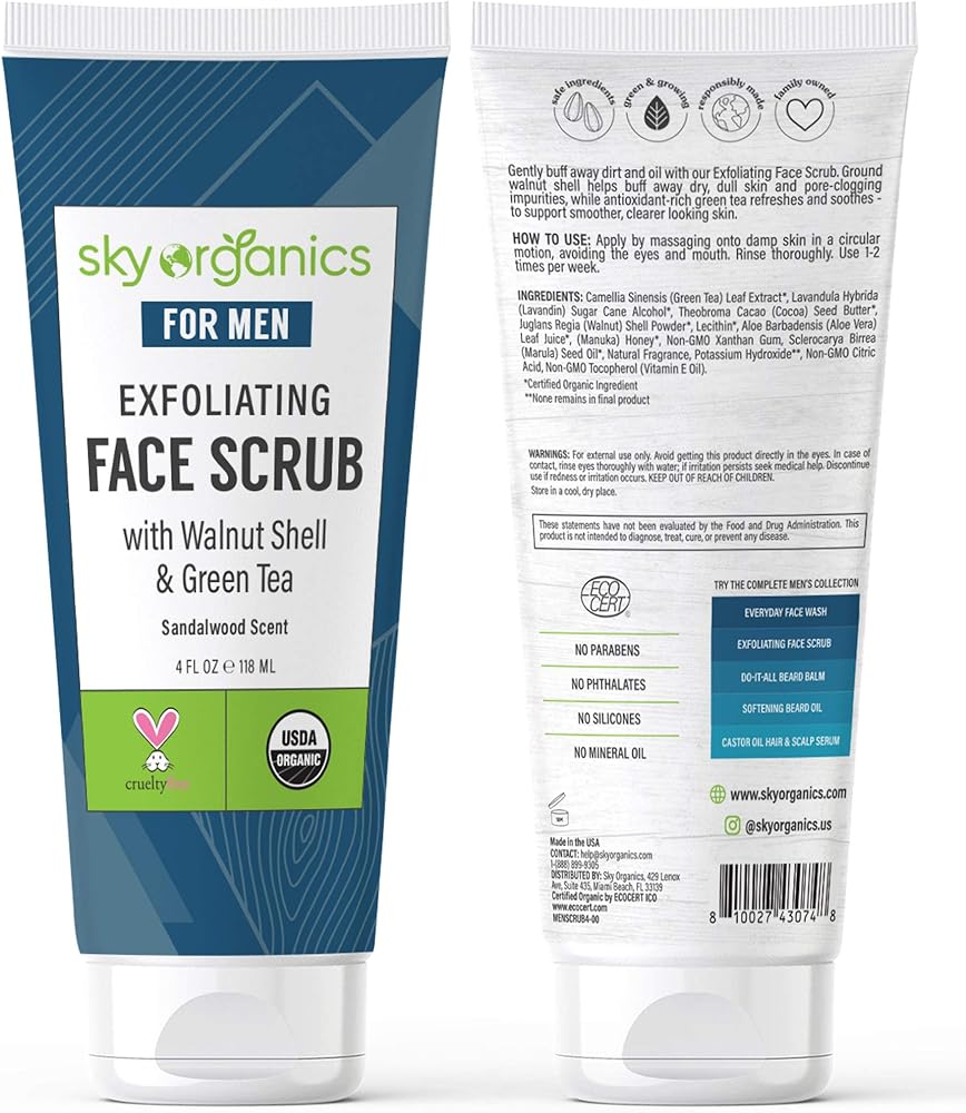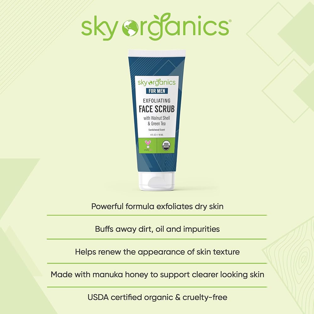 مقشر الوجه المقشر للرجال (118 مل) مقشر عضوي عضوي من وزارة الزراعة الأمريكية بعسل المانوكا وخلاصة الصبار لجميع أنواع البشرة الجافة ومعتمد من وزارة الزراعة الأمريكية، لم يتم اختباره على الحيوانات