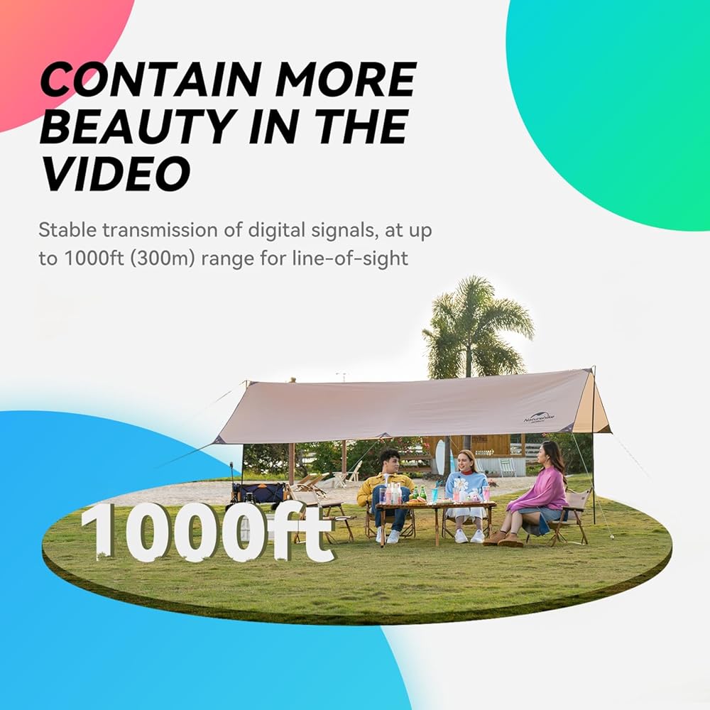 • 【تسجيل الفيديو عن بعد】احصل على مزيد من الحرية في الانتقال من جهازك إلى نطاق لوس يصل إلى 1000 قدم مع هوائي LDS عالي الكسب. يمكن التسجيل والتقاط الصور بجهاز التحكم عن بعد من خلال النقر المزدوج على العلبة الصفراء للميكروفون.