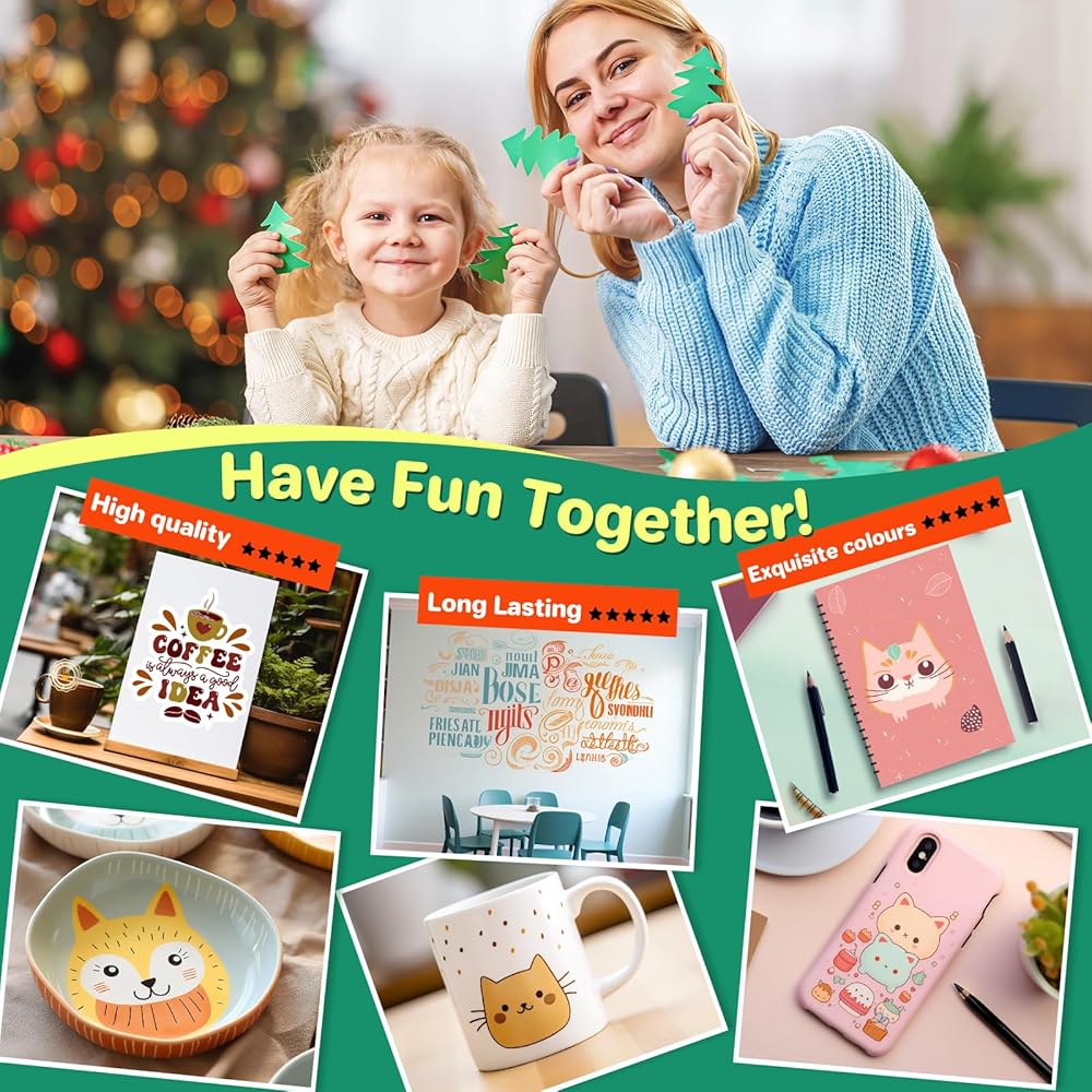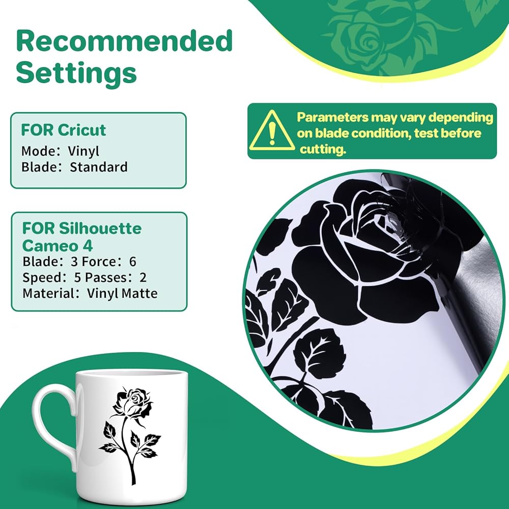 [استخدام واسع] الفينيل اللاصق الدائم مناسب لجميع أنواع الديكورات الداخلية والخارجية، ولن يبهت أو يتقشر تحت أشعة الشمس أو المطر. لا يمكنك استخدامها فقط لتزيين الأكواب والدفاتر والأجزاء الخارجية للسيارة، ولكن أيضًا لصنع بطاقات عيد الميلاد والهدايا المصنوعة يدويًا وما إلى ذلك.