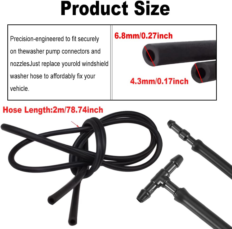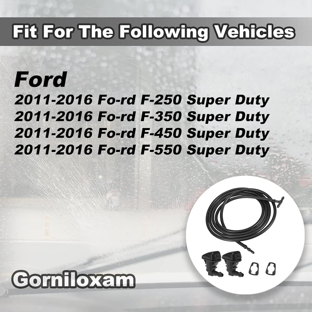 طقم فوهات غسالة الزجاج الأمامي 7 قطع من Gorniloxam، بديل لـ F250 F350 F450 F55 Super Duty، يستبدل OE: 7C3Z17603A (خرطوم غسالة الزجاج الأمامي بطول 2 متر مع موصلات)