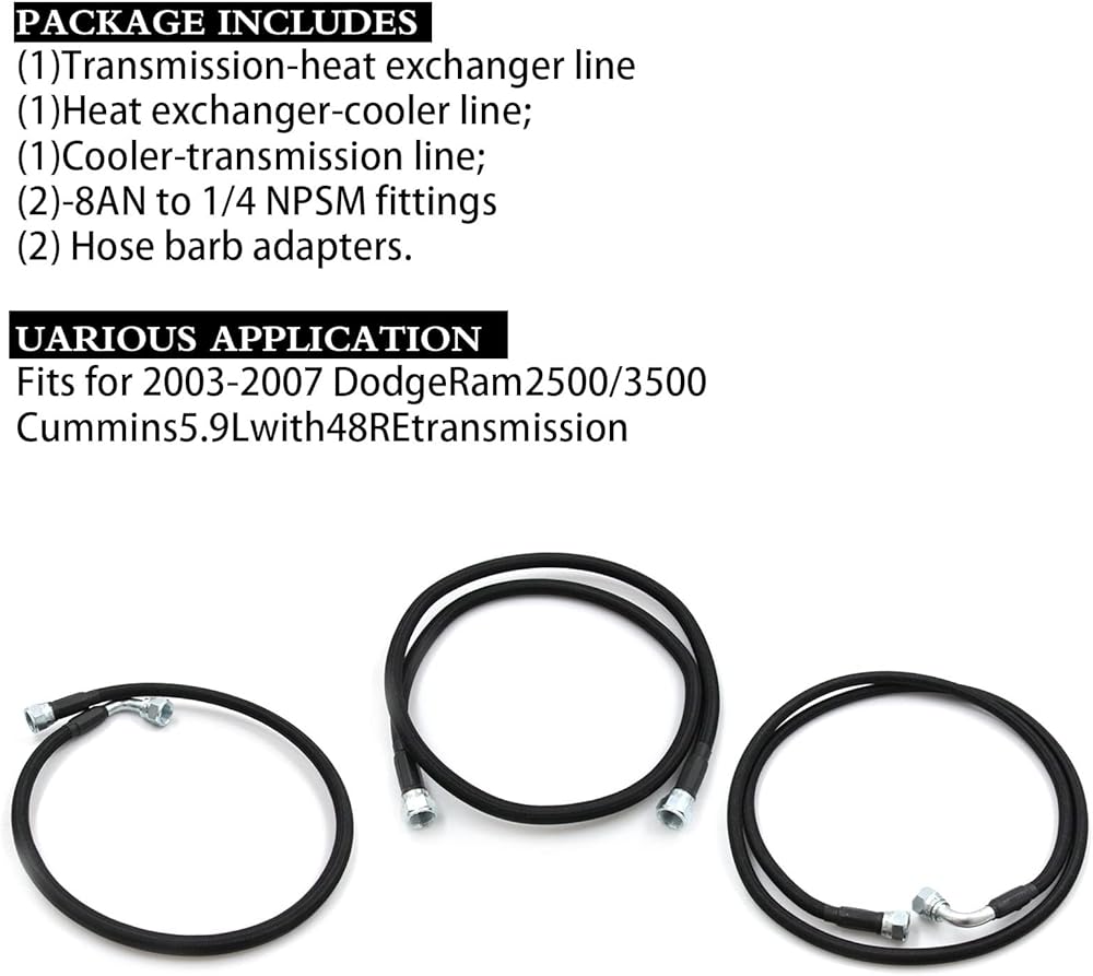 • 【Perfect Fit】Includes all 3 lines (Transmission to Heat Exchanger, Heat Exchanger to factory air Cooler & air Cooler to Transmission).