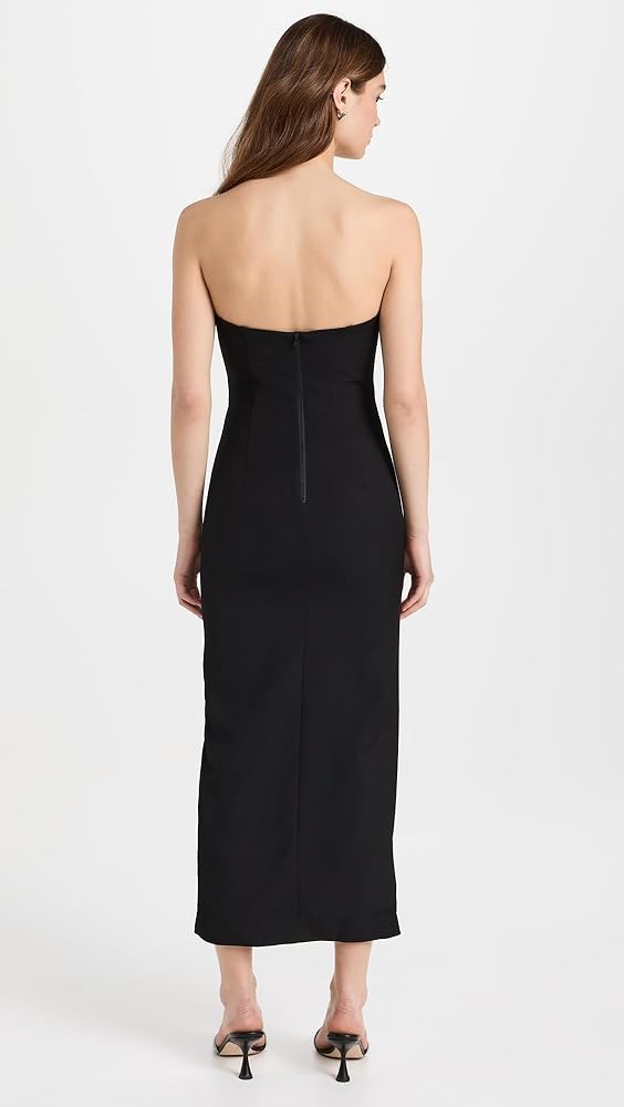 مقاس صغير من خلال الخصر، يرجى اختيار مقاس أكبر. ، مصمم بصورة ظلية ضيقة وطول متوسط. نسيج الكريب يوفر تمددًا طفيفًا. يوصى باستخدام حمالة صدر بديلة وشريط أزياء لتأمين خط العنق.