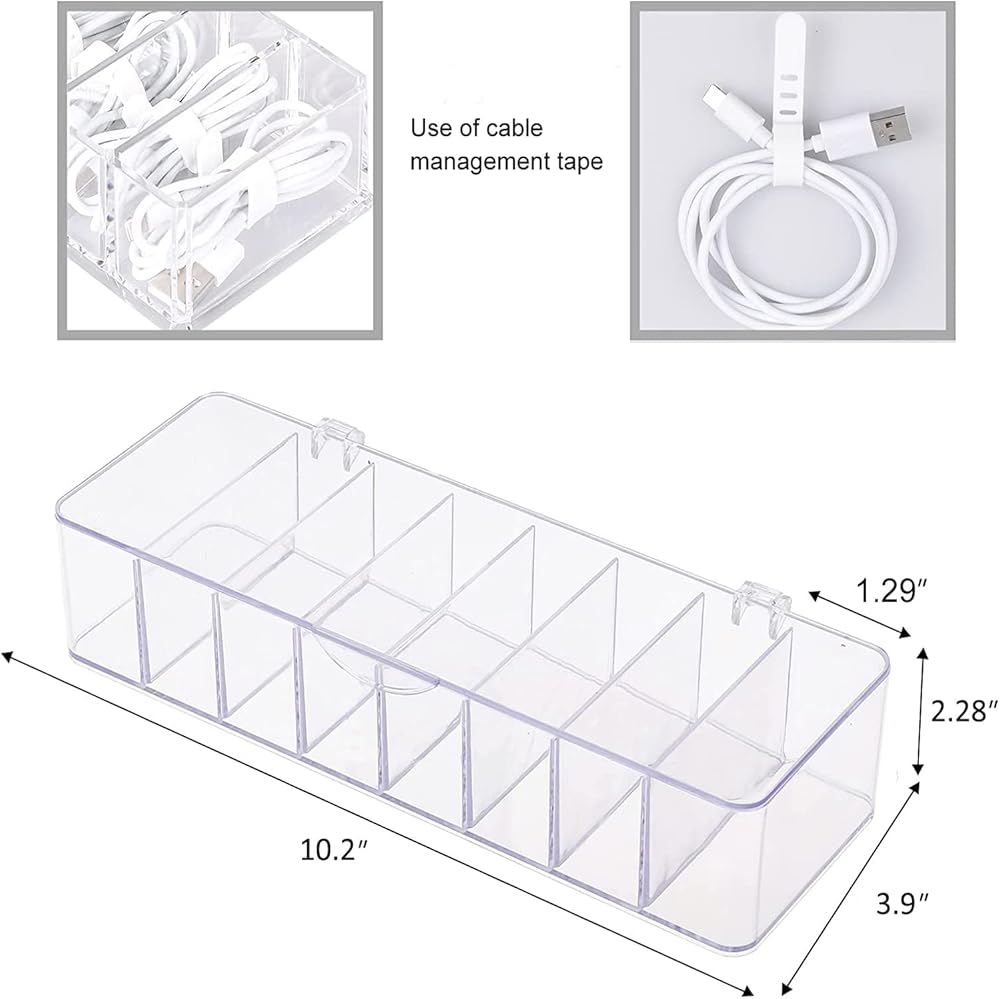 【صندوق تخزين كابل البيانات الشفاف】إذا كنت متعبًا من تنظيم المكاتب والأدراج الفوضوية، فإن صندوق منظم الكابلات والملحقات يحافظ على جميع أنواع الأدوات والأشياء منظمة ومرئية. هذا المنظم مثالي لتخزين الكابلات وشواحن الهاتف وأسلاك الطاقة والأسلاك. تساعدك المنظمات على إبقائها منظمة، بحيث لا يكون لديك أسلاك وكابلات على مكتبك.