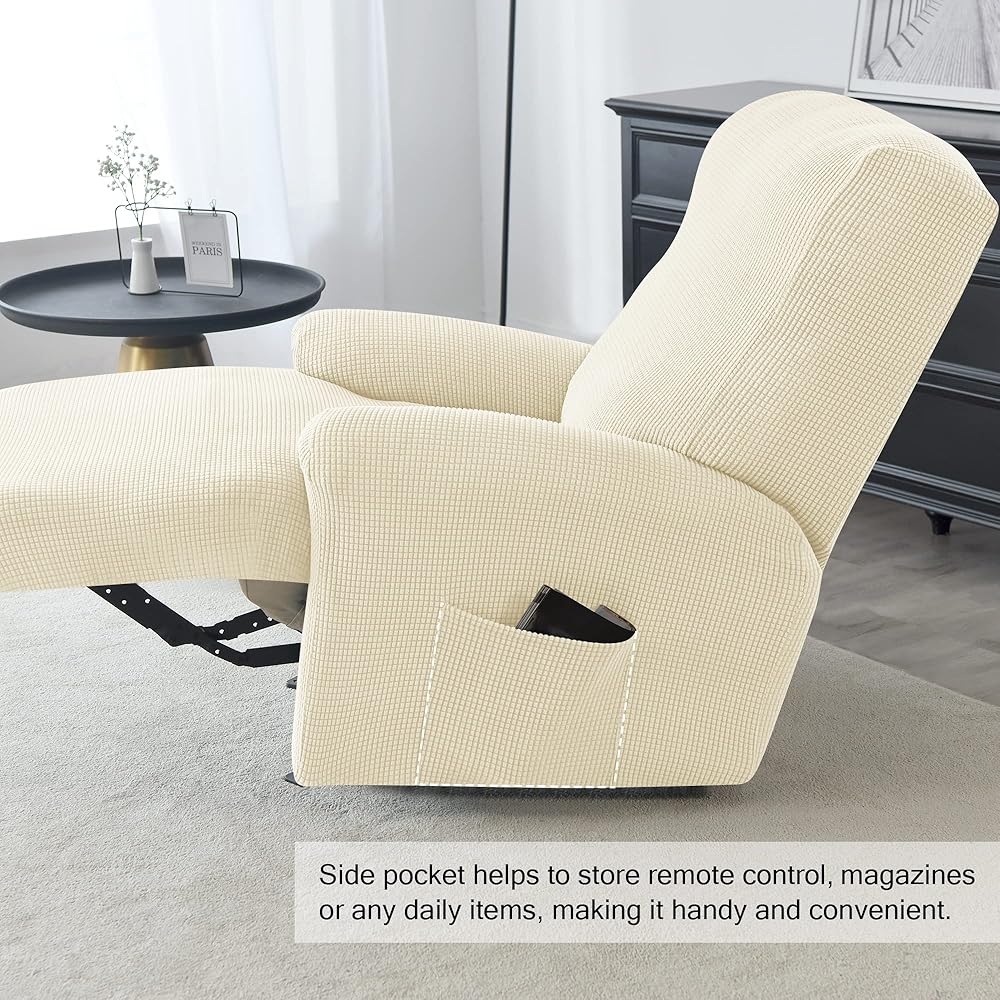 ◆ ملاءمة مثالية - يمكن لغطاء الكرسي القابل للتمدد أن يناسب بسهولة معظم أنواع الكراسي والأرائك، ويناسب عرض المقعد (27 بوصة - 33 بوصة). مع تصميم الجيب الجانبي، يمكنك وضع جهاز التحكم عن بعد والمجلات وغيرها من الأشياء الصغيرة على الجيوب الجانبية.