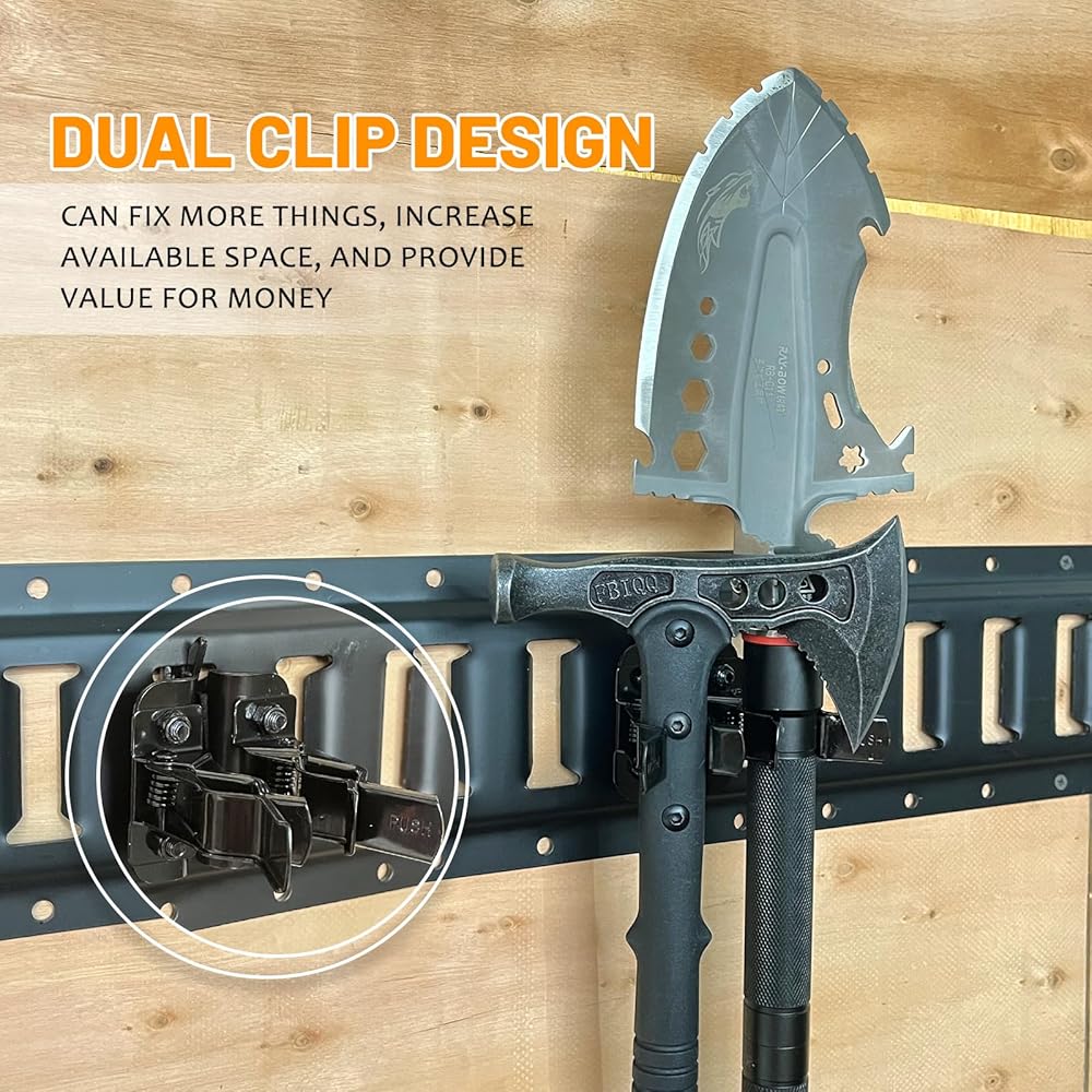 【2 in 1 Tool Holders】IT'S REVOLUTIONARY! 1 Tool Holders can hold 2 items, maximizing space savings and storing more tools. SIMPLIFY business operations and make life easier by holding your trailer and warehouse accessories in these trailer wall organizers for PORTABLE AND CONVENIENT EASY ACCESS!