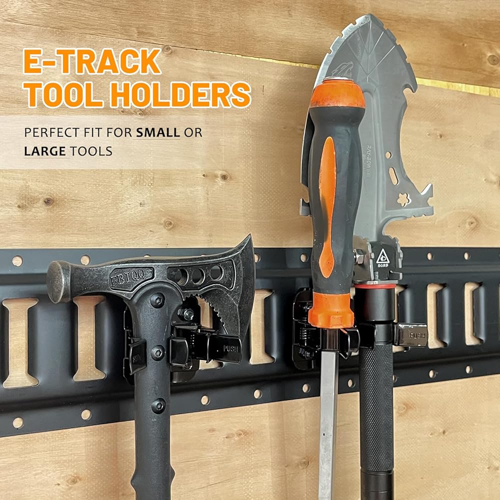 【High Quality】The Tool E track tool hangers are made of heavy-duty polyurethane and strong zinc-plated steel which is sturdy, durable and versatile to hold your tools in place
