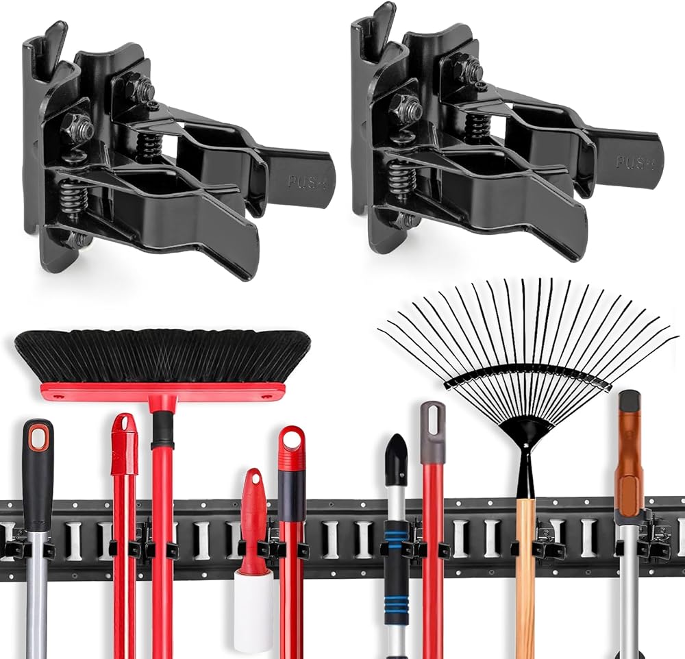 【Portable E-Track Holder】Our E-Track Tool Holder design for hanging shovels, brooms, dirty rakes, wet mops, and workshop tool accessory. Those e track tool holders are compatible with E Track Rail System slots.