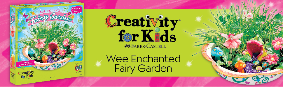 Craft, plant, water and grow with indoor gardening that engages imagination all year round. Create your own magical miniature fairy land! The Creativity for Kids Wee Enchanted Fairy Garden Craft Kit includes everything you need - just add water! This complete fairy garden kit contains an 11 inch fairy garden dish, flower fairy Hannah figurine, resin fairy house, two resin toadstools, sparkling gems, glittery pixie dust, two tulle butterflies fabric flower bouquet, glass opti-stones, purple gravel, seeds (wheatgrass and bean mixture), potting soil, fine tipped paint brush, six acrylic paints and illustrated instructions with lots of ideas. Great for gifting! This Fairy Garden Terrarium is the perfect unique gift for girls who love fairy crafts. Decorate your own fairy garden with this my first fairy garden craft kit. This Fairy Garden kit is the perfect gardening activity set for children. See your child's creative side come to life as they paint and decorate their fairy garden. Learn about botany and the life cycle of plants as your child watches their fairy garden grow! The Wee Enchanted Fairy Garden kit requires a sunny window to allow your plants to grow. Outdoor use is not recommended. For best results, use a sunny window or the Creativity for Kids Grow Light – sold separately. Contents conform to ASTM D-4236. This fairy garden craft is a great gift or kids craft activity for ages 7 to 97