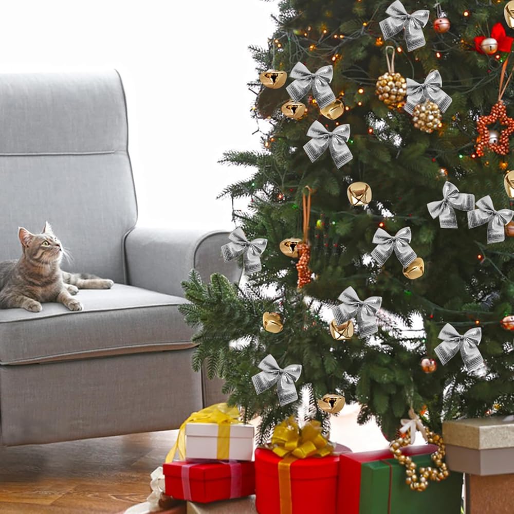 50 حزمة من أجراس جلجل مقاس 1 بوصة لأجراس جلجل ذهبية لعيد الميلاد لتزيين المهرجانات الحرفية مع سلك أحمر بطول 30 مترًا و12 عقدة