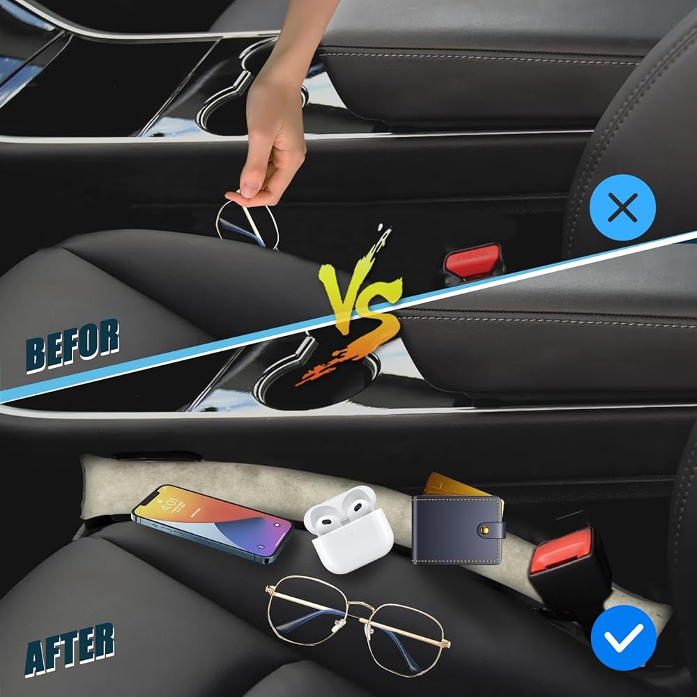 🚕【Improved Experience】:With this car seat gap filler, Prevent small items from falling into the gap, It reduces the chances of distractions caused by loose items rolling around in your car, making your drives safer.