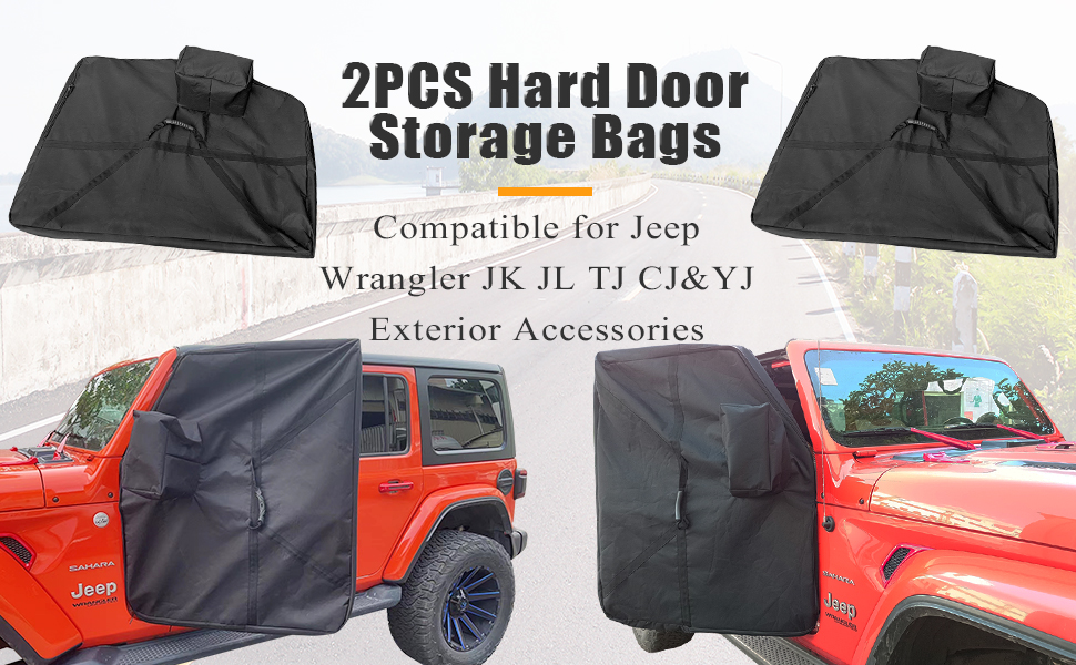 أكياس تخزين للأبواب الصلبة قطعتان متوافقتان مع الملحقات الخارجية لسيارة Jeep Wrangler JK JL TJ CJ&YJ وجيوب تخزين ببابين مع مقبض حمل وحقيبة مرآة مستقلة