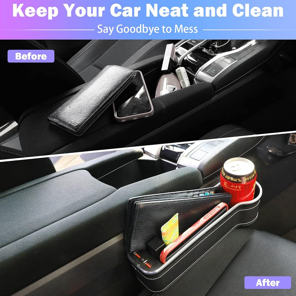 💡【خامة عالية الجودة】منظم مقعد السيارة الخاص بنا مصنوع من جلد البولي يوريثان عالي الجودة، وهو متين ومقاوم للخدش وتصميم مقاوم للماء. يجب أن تحتوي السيارة على حشو فجوة المقعد مما يجعل سيارتك أكثر دفئًا ومرتبة.
