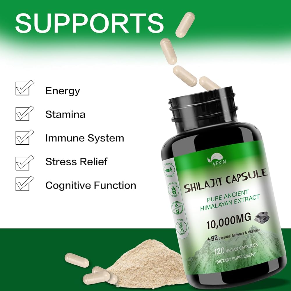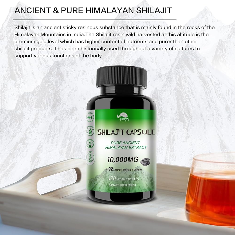 كبسولات شيلاجيت التكميلية - يتم الحصول على شيلاجيت من الدرجة الذهبية مباشرة من جبال الهيمالايا على ارتفاع 18000 قدم، مما يضمن أعلى جودة ومحمل بالمعادن الأساسية وحمض الفولفيك.