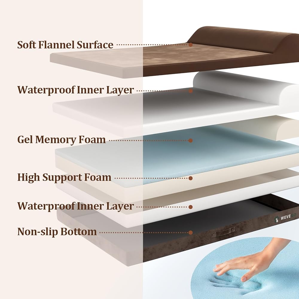【سرير كلاب قابل للغسل】يحتوي الجزء السفلي من سرير الحيوانات الأليفة على العديد من القطع الصغيرة من النقاط غير القابلة للانزلاق والتي يمكن تثبيتها على الوضع، مما يوفر دعمًا ثابتًا ويقلل من خطر إصابة الحيوانات الأليفة. يحتوي سرير الكلاب WEVEGO على طبقة داخلية مقاومة للماء، والتي يمكن أن تمنع بشكل فعال اختراق السائل إلى السجادة، وبالتالي إطالة عمر خدمة الرغوة. يمكن لأسرة الكلاب المخصصة لتقويم العظام أن تحافظ على شكلها بغض النظر عن عدد مرات نوم حيواناتك الأليفة.