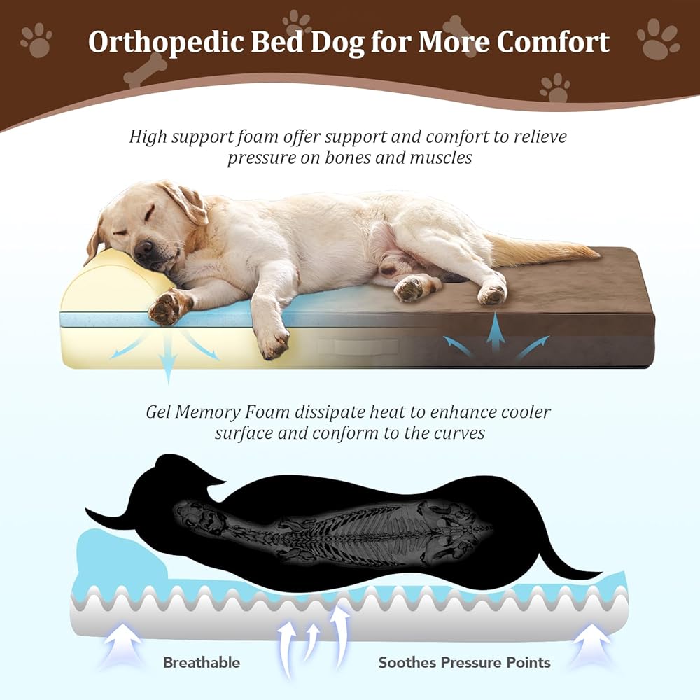 【سرير كلاب لتقويم العظام】: سرير الكلب الكبير مصنوع من إسفنج ميموري فوم بسمك 7.87 بوصة، ومصنوع من طبقة مزدوجة من إسفنج وإسفنج جل لتقويم العظام، مما يوفر للكلاب دعمًا قويًا بشكل فعال ومريح. مع تصميم وسادة الرأس والعناية، يمكن للحيوانات الأليفة أن تريح ضغط العمود الفقري عند النوم عليها، كما لو كانت بيد المالك لمنحها رعاية لطيفة.