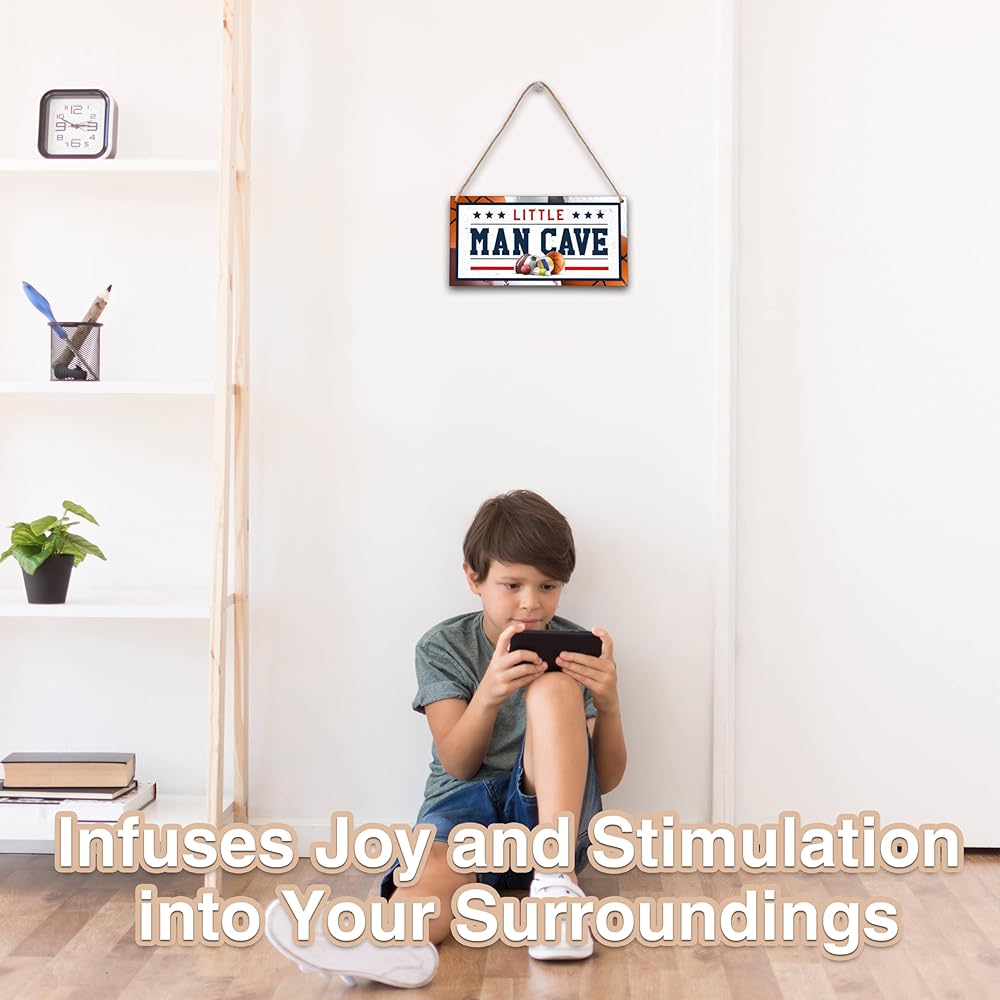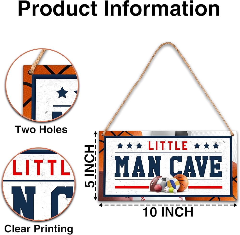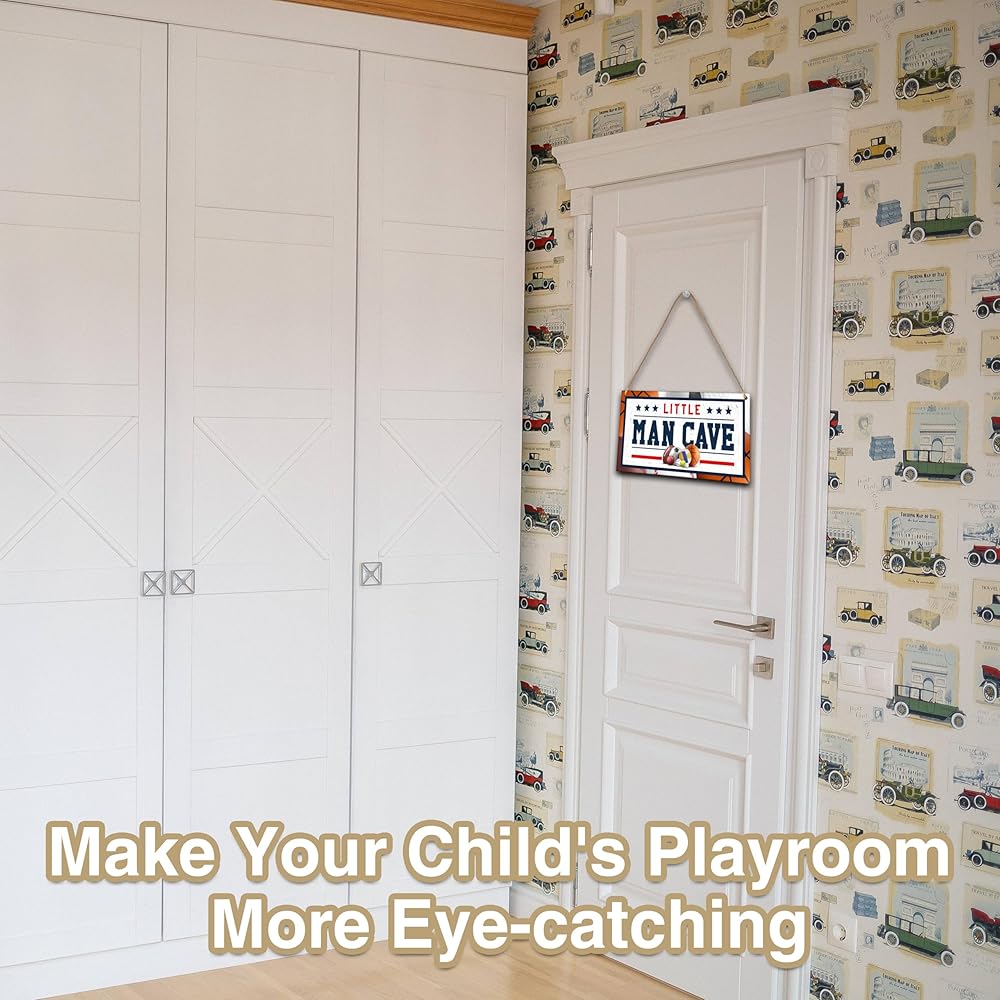 Room Sign Dimensions - The Little Man Cave sign size is 5" x 10". Package included - One wood sign with one natural rope. Premium Quality - Crafted from high-quality wood, this Little Man Cave sign is built to last. Its durable construction ensures that it will maintain its beauty and charm even with regular use and handling. Eye-catching Design - Designed with advanced printing technology, this wooden wall sign is classic, rustic and beautiful, and the different decorating styles to help you make your home more eye-catching. And easy to hang in teens boy room , man cave room,children's room, game lovers bedroom or front door,can bring joy and stimulus atmosphere to your home. Great Gift Idea - These Little Man Cave room wall decoration will be a perfect gift for families, friends, children and boys on birthdays, game party. You can also make it be a great gift for a baby shower or a nice surprise for any new mother or father!