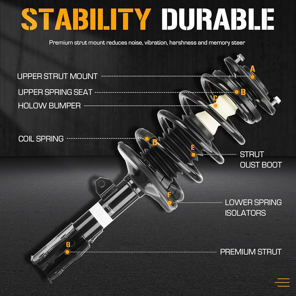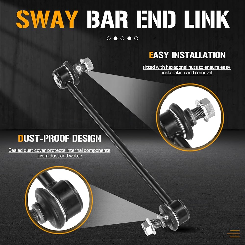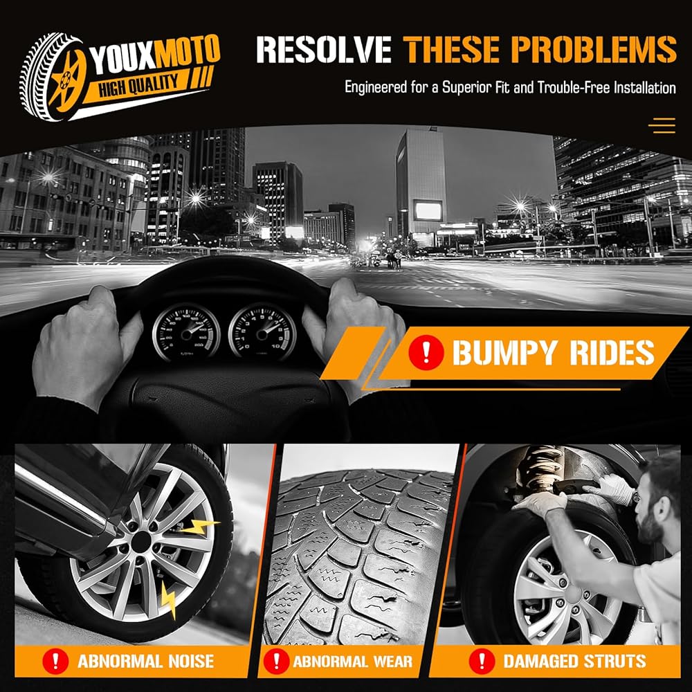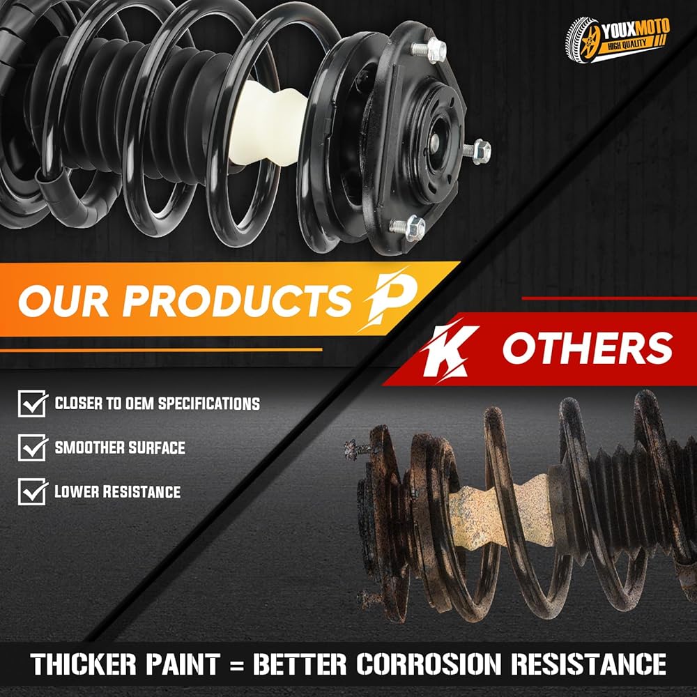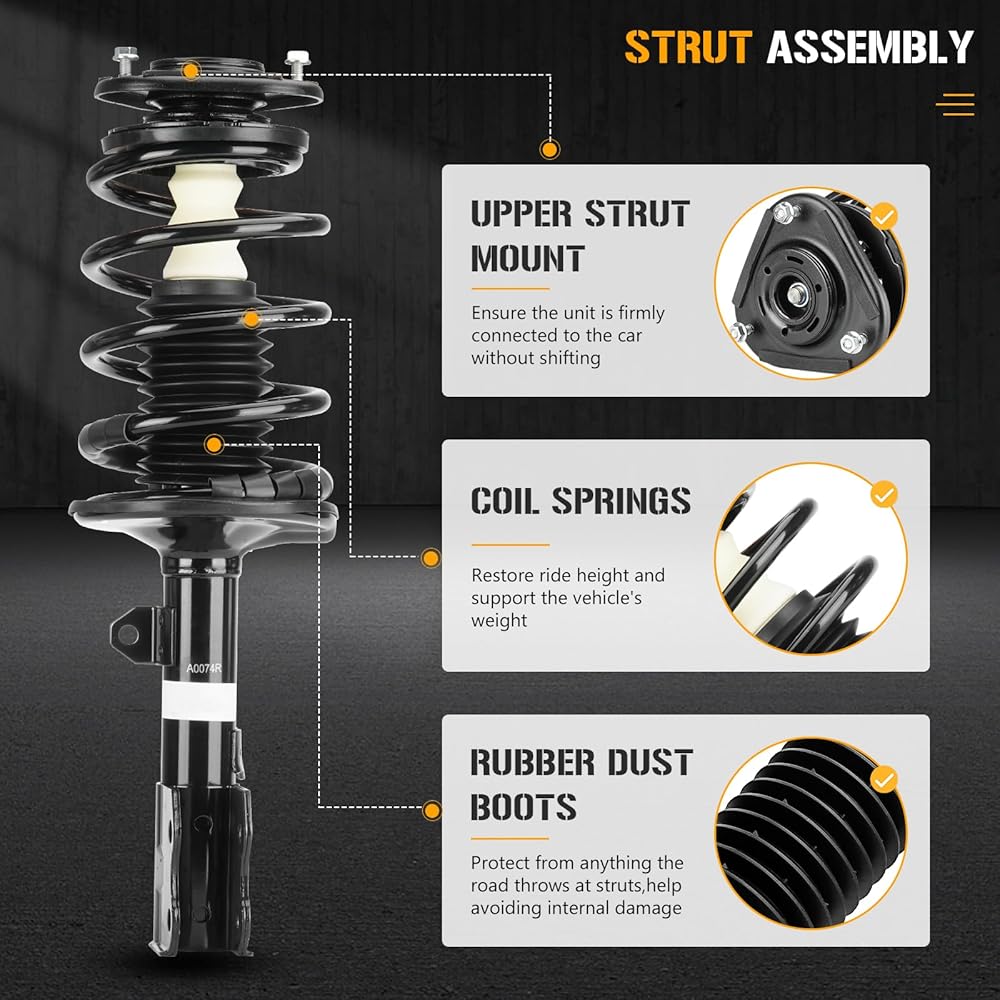 【Package Includes】4Pcs Kit Includes - 1 x Complete Front Left Quick Install Ready Strut Assembly (Driver Side) 1 x Complete Front Right Quick Install Ready Strut Assembly (Passenger Side) 2 x Front Stabilizer / Sway Bar End Link
