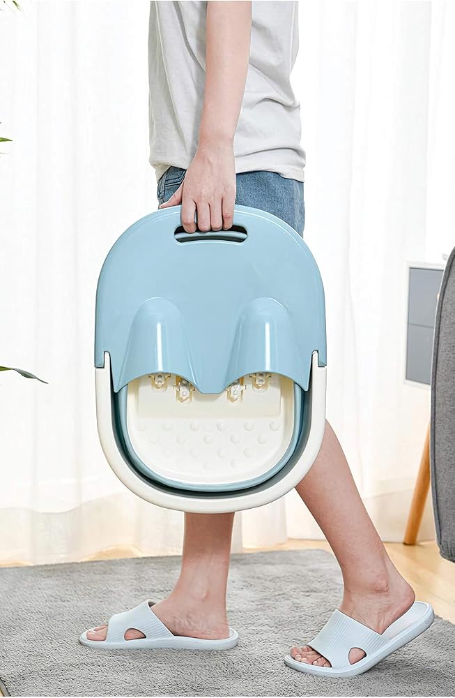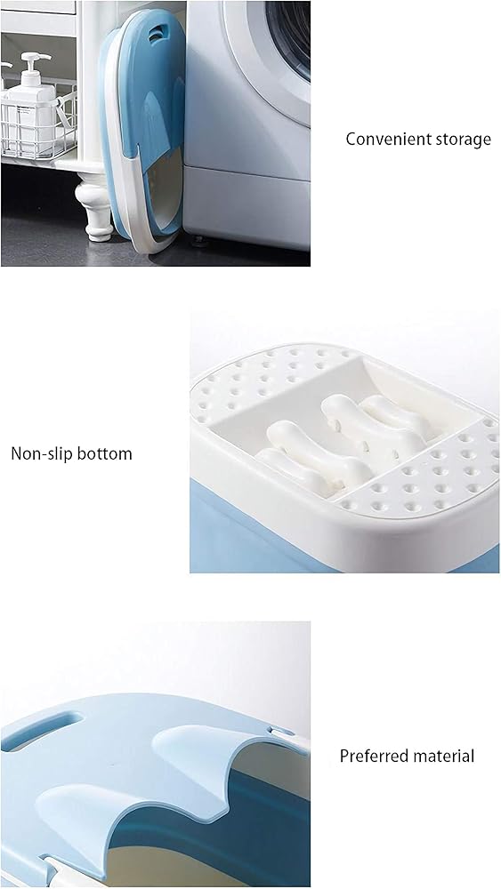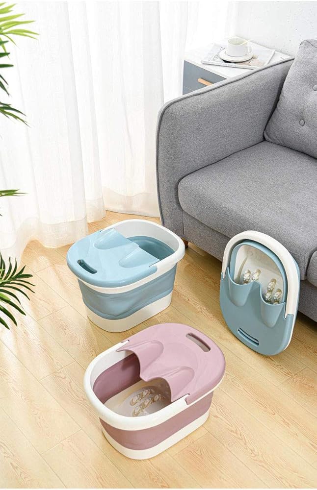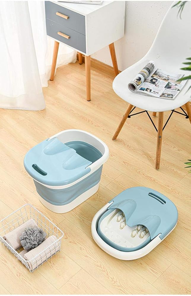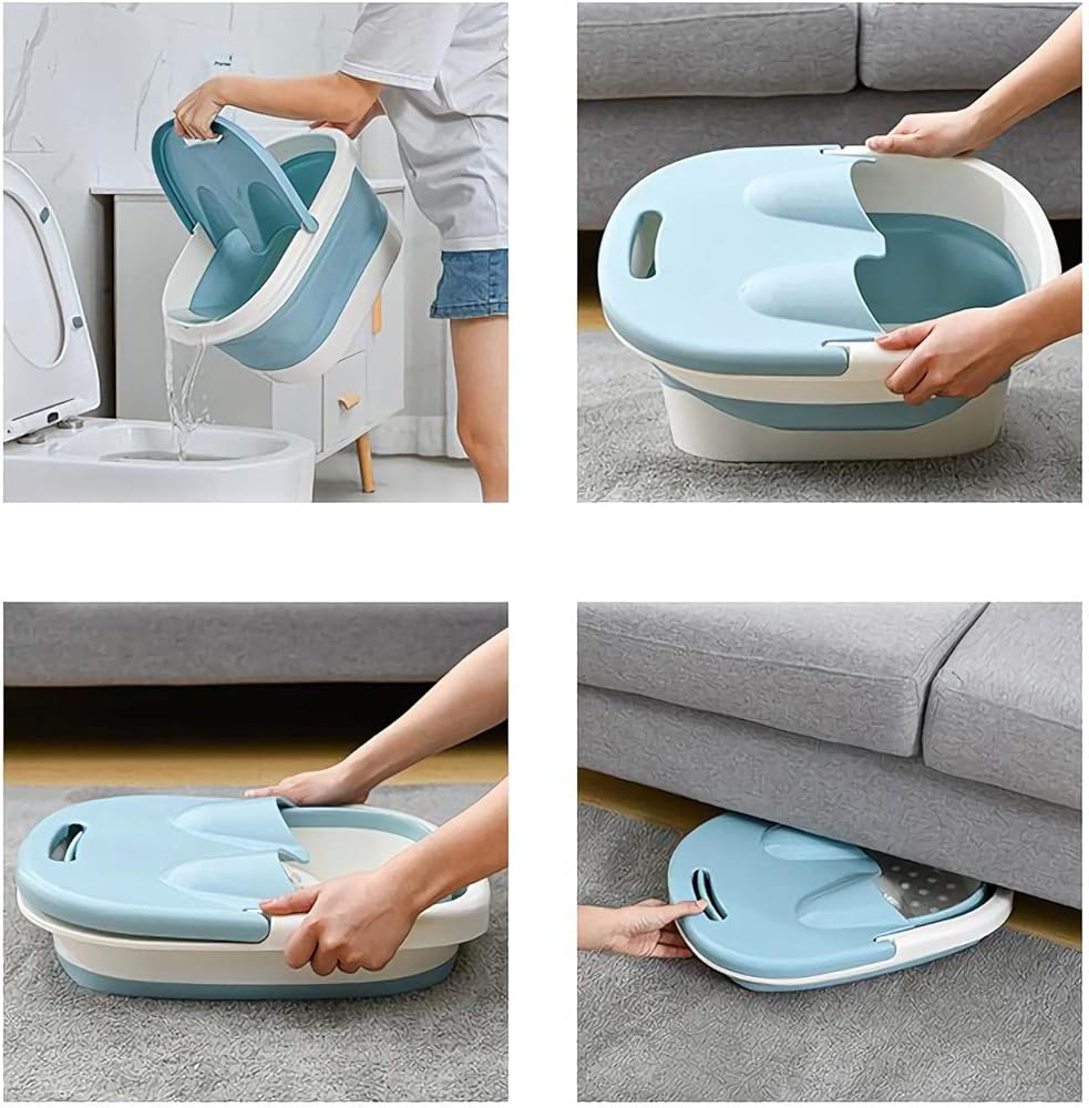 حوض استحمام للقدمين، أدوات حوض للقدمين، حوض استحمام قابل للطي، حوض استحمام من البلاستيك/المطاط، دلو قابل للطي، دلو كبير لنقع القدم، حوض استحمام قابل للطي، صينية حمام للقدم (أزرق)
