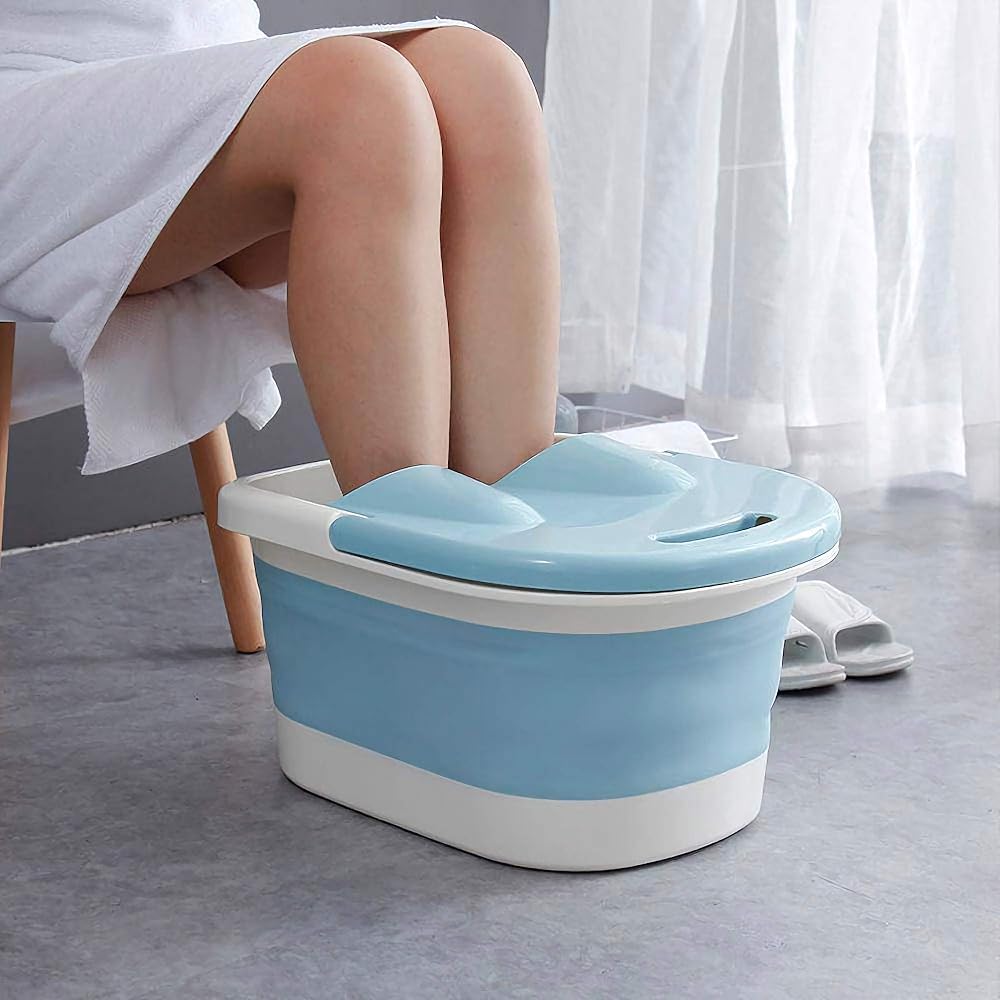 الدلو القابل للطي هو أداة سهلة ومريحة لنقع القدمين استعدادًا لمجموعة متنوعة من العلاجات المنزلية لإزالة مسامير القدم والجلد الجاف والجلد الصلب وتشقق القدمين وأقدام الرياضيين.