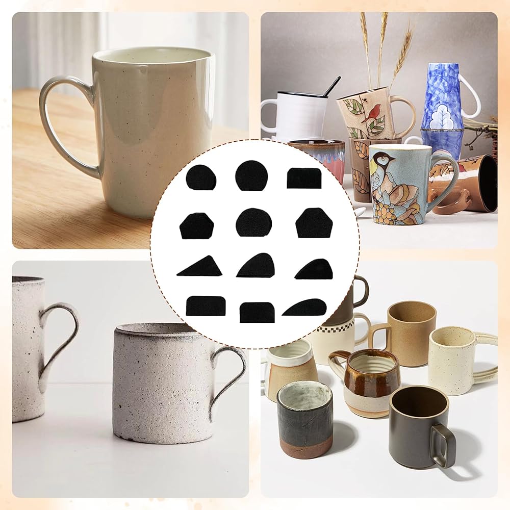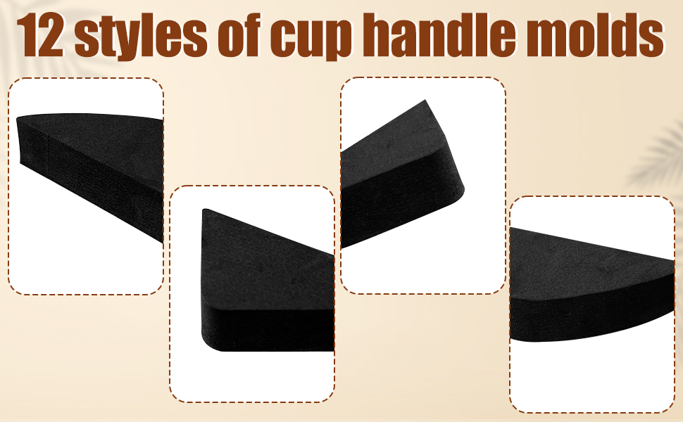 【قوالب بمقابض الأكواب الفخارية】تتضمن مجموعة صنع الأكواب الخاصة بنا أيضًا 12 شكلاً من قوالب مقابض الأكواب، مصنوعة من إسفنج EVA المتين بسمك 2 سم مما يساعدك على صنع أكوابك! استخدم قالب المقبض هذا لتشكيل المقبض بشكل أسرع، يمكنك اختيار شكل ووضع الطين على القالب لتشكيله، ومن أجل الحفاظ على الشكل الذي تريده يمكنك تركه يجف قليلاً عند تثبيته على الأكواب.