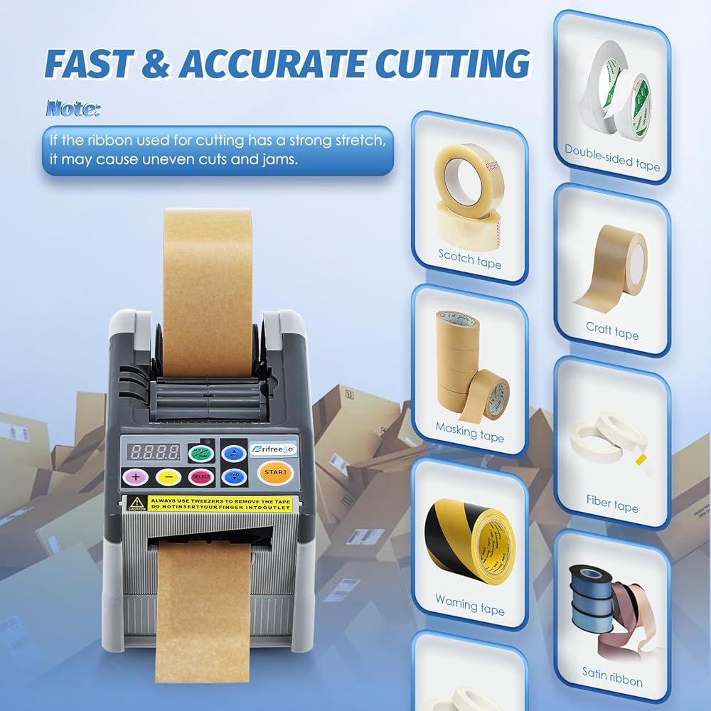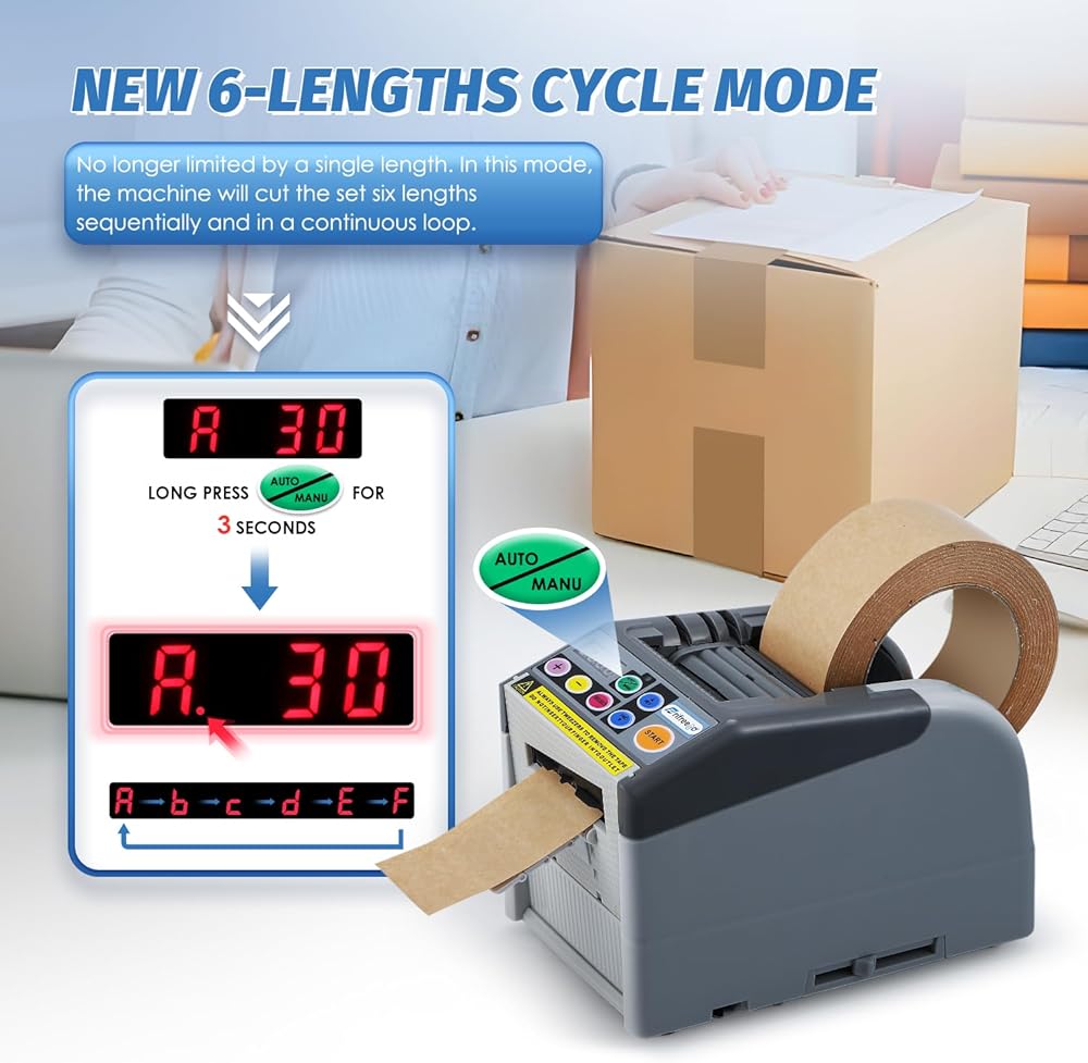 موزع شريط أوتوماتيكي بغطاء قلاب من فريفريجو، آلة قطع الشريط مع وضع دورة مطور بـ 6 أطوال، مناسب لشريط/شريط بطول 6-60 مم، الحد الأقصى للقطع 999 مم، عجلة سيليكون